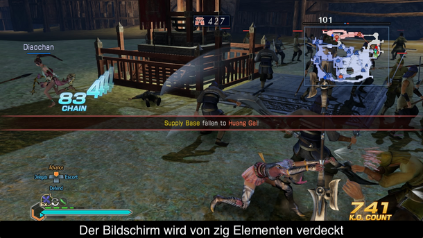 Die größte Frage der Dynasty Warriors Reihe bleibt aber, ist man in der neuen Generation ankommen? Auf den ersten Blick schein man grafisch noch teilweise auf der PS2 festzustecken. Matschige Umgebungstexturen und sich immer wieder wiederholende Elemente gehören zur Tagesordnung. Doch ein genauer Blick auf die Charaktermodelle enthüllt feinste Details und überrascht mit zahlreichen unterschiedlichen Animationen für alle Waffenarten. Auch geht die Bildrate nie in die Knie, wenn man sich durch Horden von Gegnern kämpft. Ein Umstand der die PS3-Version immer plagte. Auch überraschen die Vielzahl von synchronisierten Sprüche der Kämpfer. Naturgemäß wieder nur auf Japanisch und mit englischen Text. Einzig die immer gleichen Gegner erinnern an die Urtage der Spielreiche. Eigentlich ist die Grafik das kleinste Problem der Präsentation, diese geht beim Gewusel unter, die Bildschirm Meldungen aber nicht! Der Bildschirm ist neben Karte, Lebensleiste, Sprüchen und Schlachtmeldungen derart vollgestopft, dass das eigentlich spaßige Gameplay darunter leidet. Statt seine Figur in Aktion zu sehen, darf man lesen, dass der Gegner ein Startgem gestartet hat, ein General sich zurück zieht usw. Diese Unübersichtlichkeit trübt den Gesamteindruck deutlich! Auch die schlechte und teilweise sinnlich falsche Übersetzung drückt die Präsentation. Teilweise muss man raten, was im Menü gemeint ist.