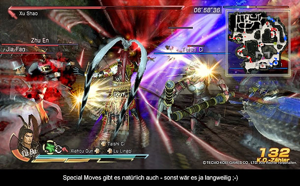 Seit dem ersten Teil ist die Dynasty Warriors Reihe zur bekannten Zeit der drei Reiche angesiedelt, eine Epoche des alten China zwischen den Jahren 208 bis 280 n. Chr. In dieser Epoche kämpften verschiedene Familien um die Vorherrschaft in China, eine Zeit mit vielen Helden und Schlachten. Also die optimalen Bedingungen um möglichst viele bekannte Charaktere in einem Spiel unterzubringen. Erzählt wird die Geschichte in Texten, Zwischensequenzen und einer aufwendigen Enzyklopädie. Ob ihr euch in diese Zeit hineinversetzen wollt, ist euch selber überlassen. Wer aber will, sollte sich jedoch vor Augen führen, dass Omega Force hier reichlich übertrieben hat und wohl so manche Schlacht nicht ganz der Realität entspricht. In erster Linie steht nämlich der Spaß des Spiels im Vordergrund. Aus diesem Grund gibt es auch einen zweiten Handlungsstrang in der Geschichte, eine Was-Wäre-Wenn Alternative. Denn werden bestimmte Auflagen im Spiel erfüllt, können diese Wege bestritten werden und dem mächtige Krieger Lu Bu gelingt zum Beispiel, was ihm in der Realität nicht möglich war. Neben Lu Bu gibt es noch fünf weitere Handlungen mit jeder Menge optionalen Routen und Schlachten. Für genügend Langzeitmotivation ist also gesorgt.