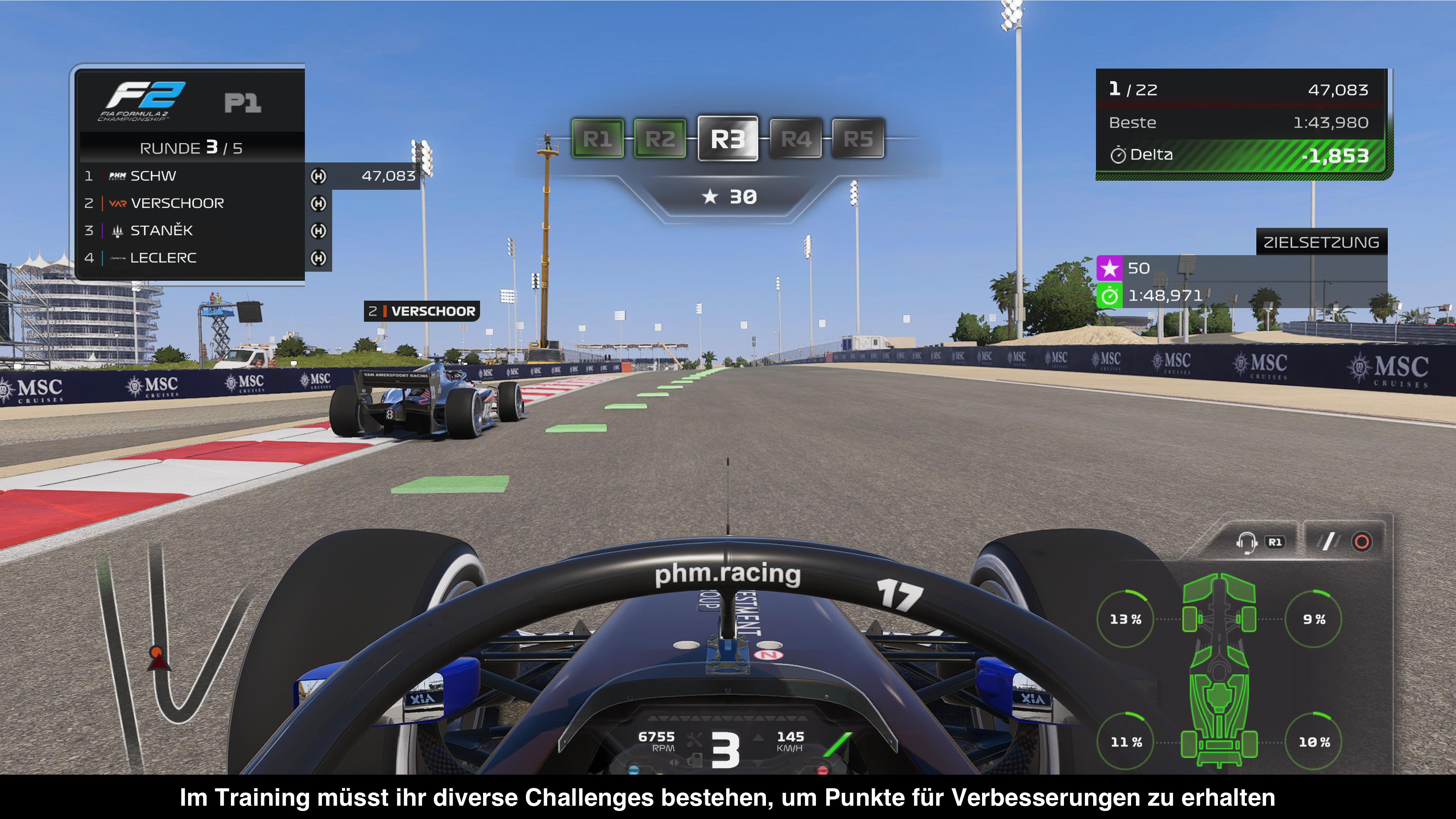 Was das Gameplay angeht, muss man dieses Jahr auf große Neuerungen verzichten. Das Spiel fährt sich im Kern wie letztes Jahr, was nicht mal ein großes Problem ist. Insbesondere das Handling mit dem Controller hat letztes Jahr ein großes Update erhalten. Trotzdem gäbe es mehr als genug Punkte, die man hätte verbessern können. Dazu zählt zum Beispiel das Verhalten der Autos außerhalb der Strecke. Kommt man mal ins Kiesbett oder aufs Grün, wird man leider nicht so sehr bestraft, wie es in der Realität der Fall wäre. Dafür hat man jedoch die KI angepasst, die nun häufiger auch attackiert, aber auch eben Fehler macht. Das sorgt immer mal wieder für nette Momente, die zuletzt gefehlt haben, da alle wie am Schnürchen entlang fuhren. Wirklich gut sind die KI-Kontrahenten aber selbst auf den höchsten Schwierigkeitsgraden nicht. In der Qualifikation kommt man selbst mit einem schwachen Auto nach vorne und im Rennen kann man mit einer aggressiven Fahrweise immer ein paar Plätze gut machen. Hier ist also immer noch Luft nach oben.