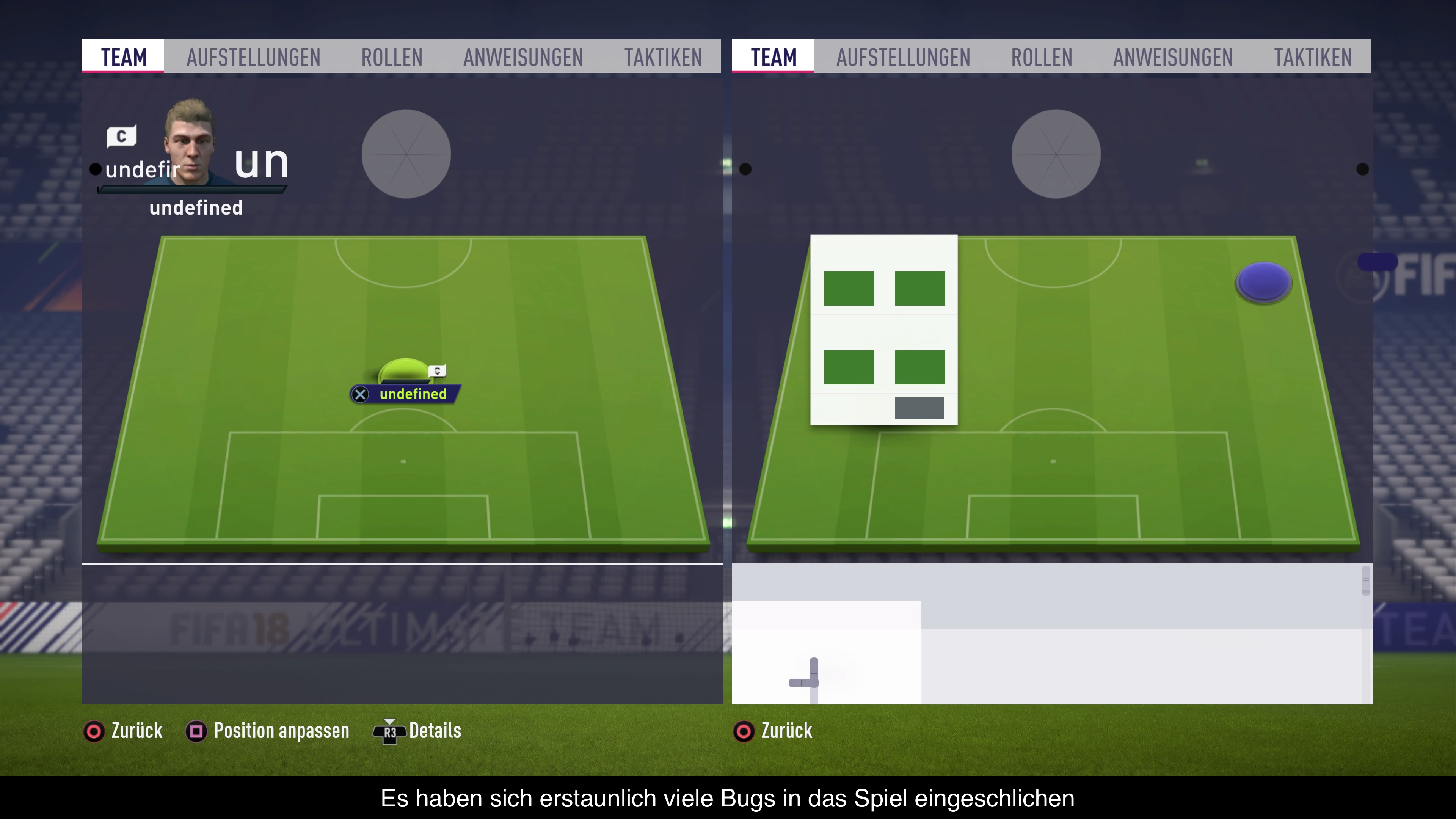 Technisch ist FIFA 18 nun schon die zweite Version, welche mit EAs Allzweckwaffe “Frostbite” läuft. Leider wartet man vergeblich auf den erhofften grafischen Sprung. So gibt es ein paar neue Effekte und Animationen, zum Beispiel, wenn ein Spieler den Ball in die Weichteile bekommt. Aber unterm Strich ist der Sprung im Vergleich zu FIFA 17 vernachlässigbar und wenn man es mit den hauseigenen Spielen, wie Madden vergleicht, wirkt FIFA 18 fast schon altmodisch. Insgesamt merkt man dem Spiel mittlerweile die Stagnation im technischen Bereich an. Die Spieler sehen bei der Konkurrenz viel besser aus, Animationen sind zwar zahlreich vorhanden, aber die Übergänge sind nicht immer perfekt und vernünftige Wetteranimationen sucht man immer noch vergeblich. Dafür stimmt ansonsten die Bildqualität und auch Bildrate. Leider ist das Spiel nicht ganz bugfrei. So konnte ich im Karrieremodus keine Wechsel mehr durchführen und nur ein Neustart half da. Solche Fehler ist man von FIFA kaum gewohnt.