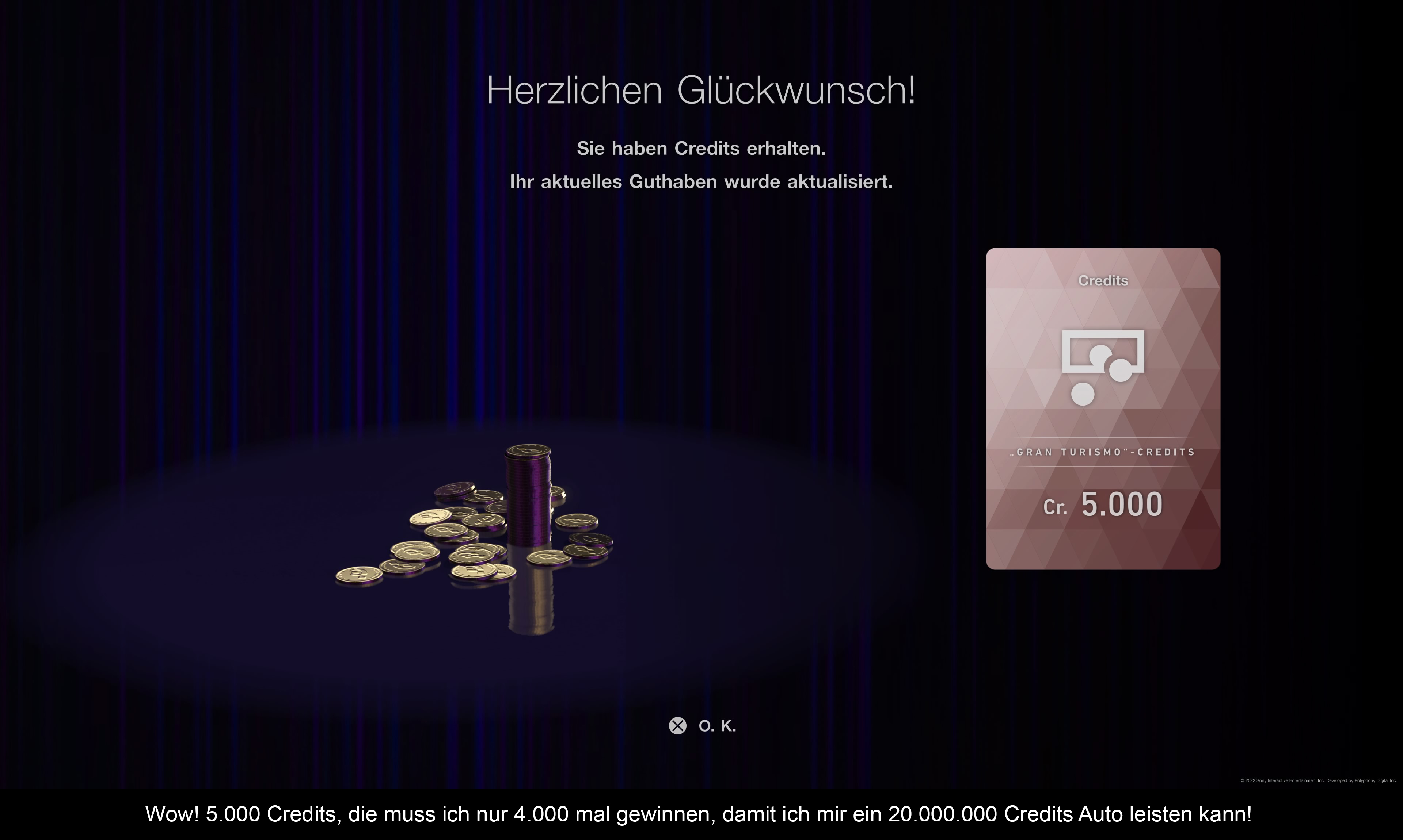 20.000.000 Millionen Credits – genau so viel kosten einige Oldtimer im Spiel. In „Gran Turismo Sport“ hatte ich es geschafft, einige (aber nicht alle) dieser Fahrzeuge zu erspielen. Im aktuellen Teil besitze ich noch gar keines dieser besonderen Fahrzeuge. Und das obwohl ich fast täglich spiele. Doch ohne exzessiven Grind im Le Mans 30 Minuten Rennen oder auf der Sardegna-Road Strecke mit 15 Runden kommt man einfach nicht zu Asche im Spiel (und da baue ich schon drauf, den Clear Race Bonus mitzunehmen). Immerhin kosten andere Fahrzeuge auch nicht gerade wenig und Tuning kann auch extrem kostspielig werden. Zwar darf man mittlerweile gewonnene Autos verkaufen, aber wirklich helfen tut das auch nicht. Die Gewinne in den Rennen sind einfach zu gering und bei den Veranstaltungen mit ordentlicher Ausschüttung gibt es zu wenig Auswahl. Wieso sollte man sich zwei Runden „Grüne Hölle“ für nur 25.000 Credits antun? Da gibt es ja keine Motivation! Und nein, auch bei den Online-Rennen und den Custom-Rennen ist die Höhe der Gewinne auch ein schlechter Witz.