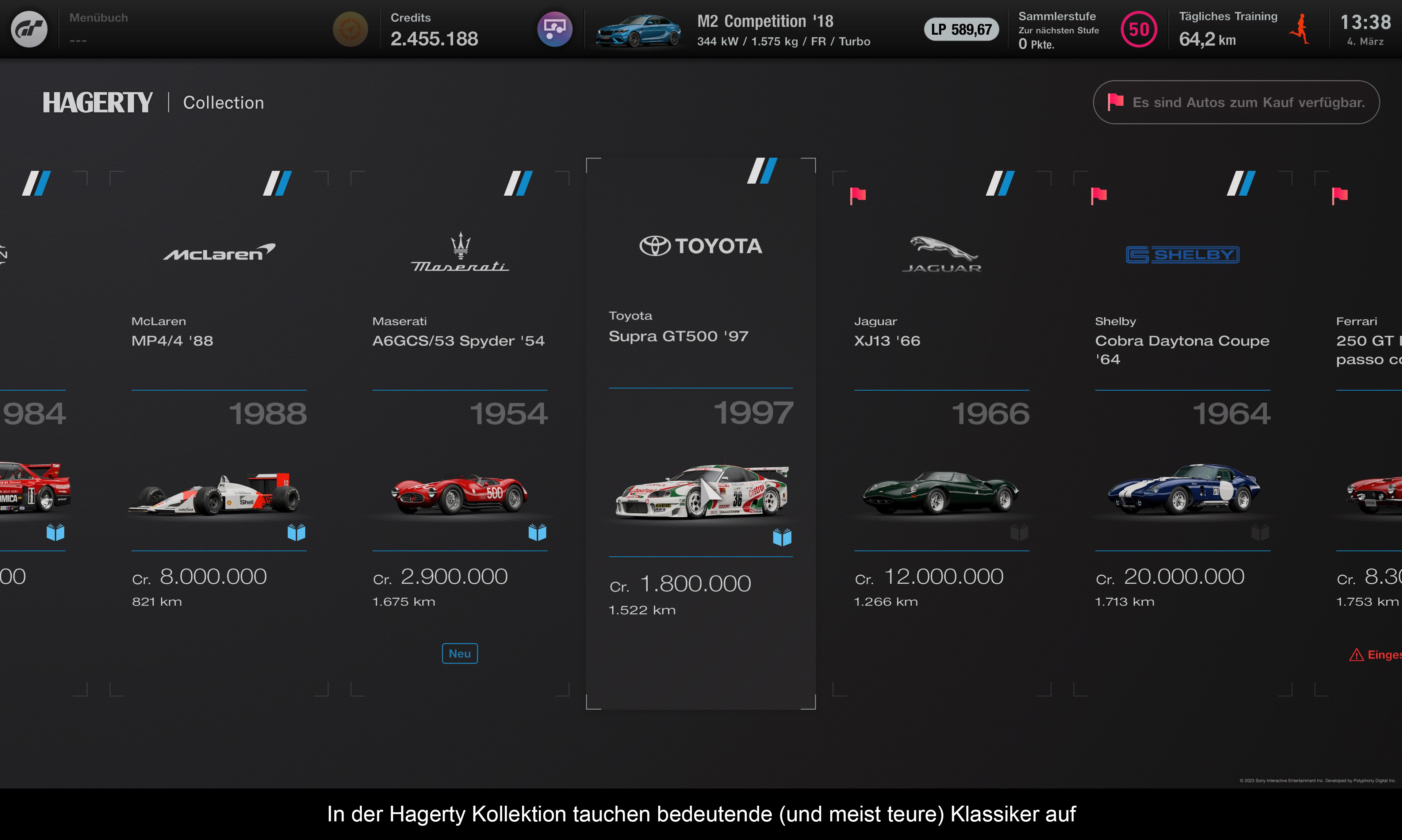Aber selbst wenn man sich diese teuren Fahrzeuge leisten kann, was dann? Kaum eines kann man in irgendeinem Event einsetzen? Letztlich bleiben diese Autos nutzlos und eigenen sich bestenfalls als Foto-Objekt in den Scapes. Doch um auch etwas Gutes in dieser Rubrik zu schreiben: „Gran Turismo 7“ honoriert den Geburtstag des Spielers mit einem Fahrzeug. Aber nicht viel mehr. Es gibt keinen Loyalitätsbonus und kein Geschenk zum Jubiläum. Bevor ich es vergesse: Man kann natürlich auch Ingame Währung mit echtem Geld kaufen. Billig ist das jedoch nicht – 2.000.000 Credits kosten zum Beispiel 19,99€. Will man also das Shelby Cobra Daytona Coupe oder den McLaren F1 fahren, müsste man für ein einzelnes dieser Autos 199,90€ aufbringen. Ja ne ist klar…