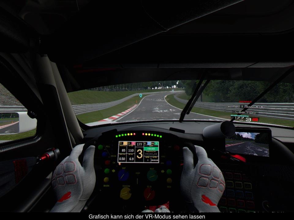 Als Sony den PlayStation VR Support von Gran Turismo Sport ankündigte, war die Überraschung groß. Das Endprodukt ist aber kaum der Rede wert. So darf man mit PlayStation VR nur offline 1 gegen 1 Rennen fahren. Kein Online-Modus, keine Time-Trials. Man wählt nur das eigene Fahrzeug, die Strecke und los gehts. Dabei hat man das Gameplay für den VR-Modus stark angepasst. Plötzlich steuern sich selbst die zickigsten Fahrzeuge recht zahm. Wahrscheinlich möchte man so Dreher und Unfälle vermeiden, die möglicherweise für Übelkeit sorgen könnten. Leider nimmt es so auch den kompletten Spielspaß heraus. Ansonsten gibt es noch einen VR-Showroom, in dem man sich die Fahrzeuge in Ruhe anschauen kann. Aber dies funktioniert nur außerhalb der Fahrzeuge und hier hat man viel Potential verschenkt.