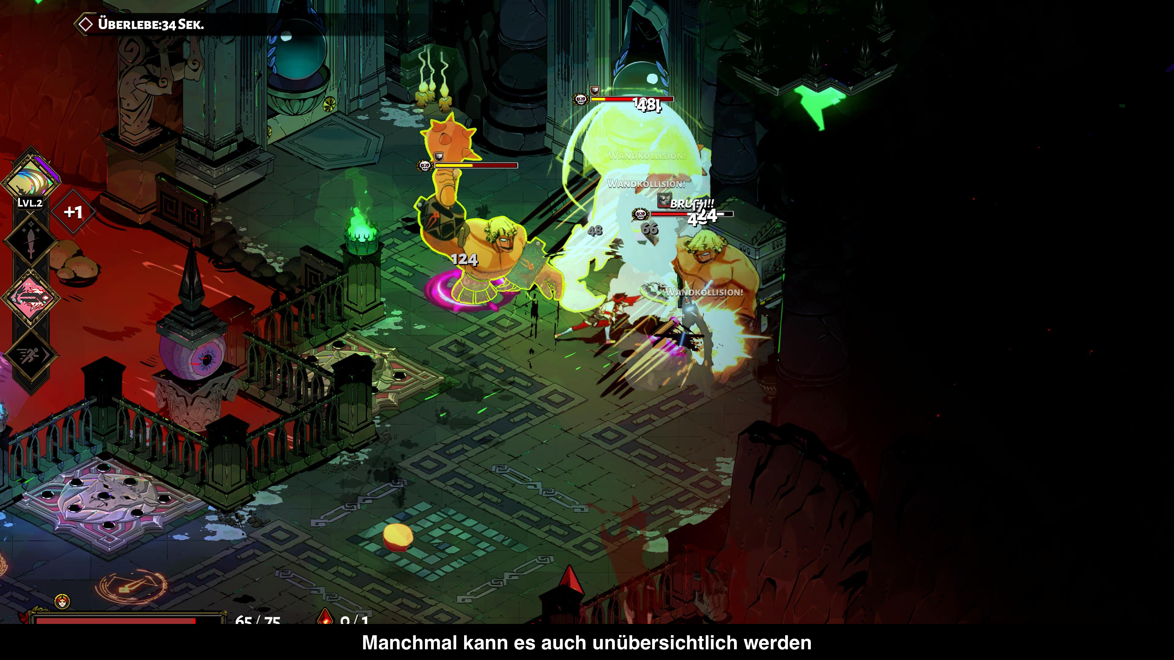 Spielerisch handelt es sich bei Hades um ein sogenanntes Rogue-lite Spiel. Das heißt eure Aufgabe ist es das Spiel in einem Durchgang zu beenden und wenn ihr sterben solltet, müsst ihr ganz von vorne beginnen und verliert Skills und Items. Jedoch gibt es auch permanente Skills und Items, die es euch so ermöglichen mit jedem Lauf etwas weiter zu kommen. Dabei unterscheidet sich jeder Lauf von dem vorherigen, weil die Welt aus Zufallsgenerierten Räumen besteht, die immer anders angeordnet sind und auch andere Gegner beinhalten. Auch die Verbesserungen sind zufallsgeneriert und finden sich in Form von Götterhilfen wieder. Je nach Raum kommt euch ein anderer griechischer Gott zur Hilfe und bietet euch seine Fähigkeiten an. Beispielsweise trifft eurer Spurt dann Gegner mit Blitzen dank Zeus oder dank Ares könnt ihr einen Klingensog herauf beschwören. Dabei hat jeder Gott eine Vielzahl unterschiedlicher Fähigkeiten, die mal mehr und mal weniger hilfreich sind und in unterschiedlichen Stärkegraden auftauchen. Wer wirklich das Spiel meistern will, muss mit Plan an die Sache herangehen da manche Gottheiten besser zueinander passen oder bessere Power-Ups für die eigene Waffe bereithalten.
