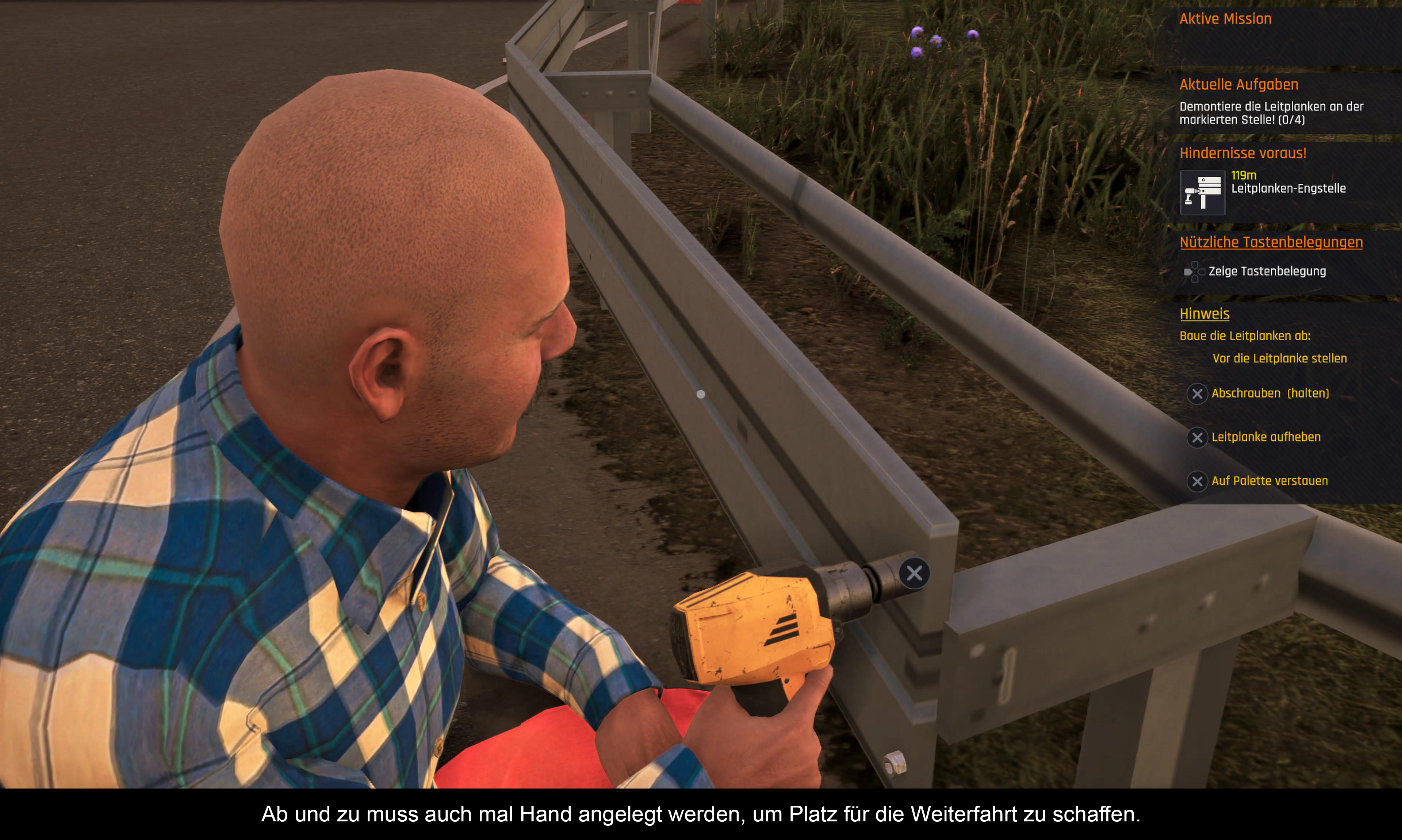 Die Aufgabe des Schwertransports besteht darin, übergroße, schwere oder unhandliche Güter sicher und effizient von einem Ort zum anderen zu transportieren. Häufig umfasst dies die Planung von Routen, das Einholen von Genehmigungen und die Begleitung durch Sicherungsfahrzeuge. Und dies wird euch bereits im umfangreichen Tutorial erklärt, wo man Schritt für Schritt den Transport durchführt. Angefangen mit der Dienstfahrt zum LKW, der Anbringung der Fracht an euren Transporter sowie dem Abbau von blockierenden Leitplanken, die eine Weiterfahrt behindern. Vor allem diese strategische Planung hebt das Spiel von anderen Genre-Vertretern ab, wo es meist nur um das Stumpe fahren von A nach B geht. Bei Heavy Cargo muss man allerdings Routen auswählen und Hindernisse wie enge Straßen, Baustellen oder Wetterbedingungen meistern. Und das Ganze findet in einer weiten, offenen Welt statt, die von dichten Wäldern und kurvigen Bergstraßen bis hin zu urbanen Industriegebieten und weitläufigen Autobahnen eine große Reihe an verschiedenen Landschaften bietet.