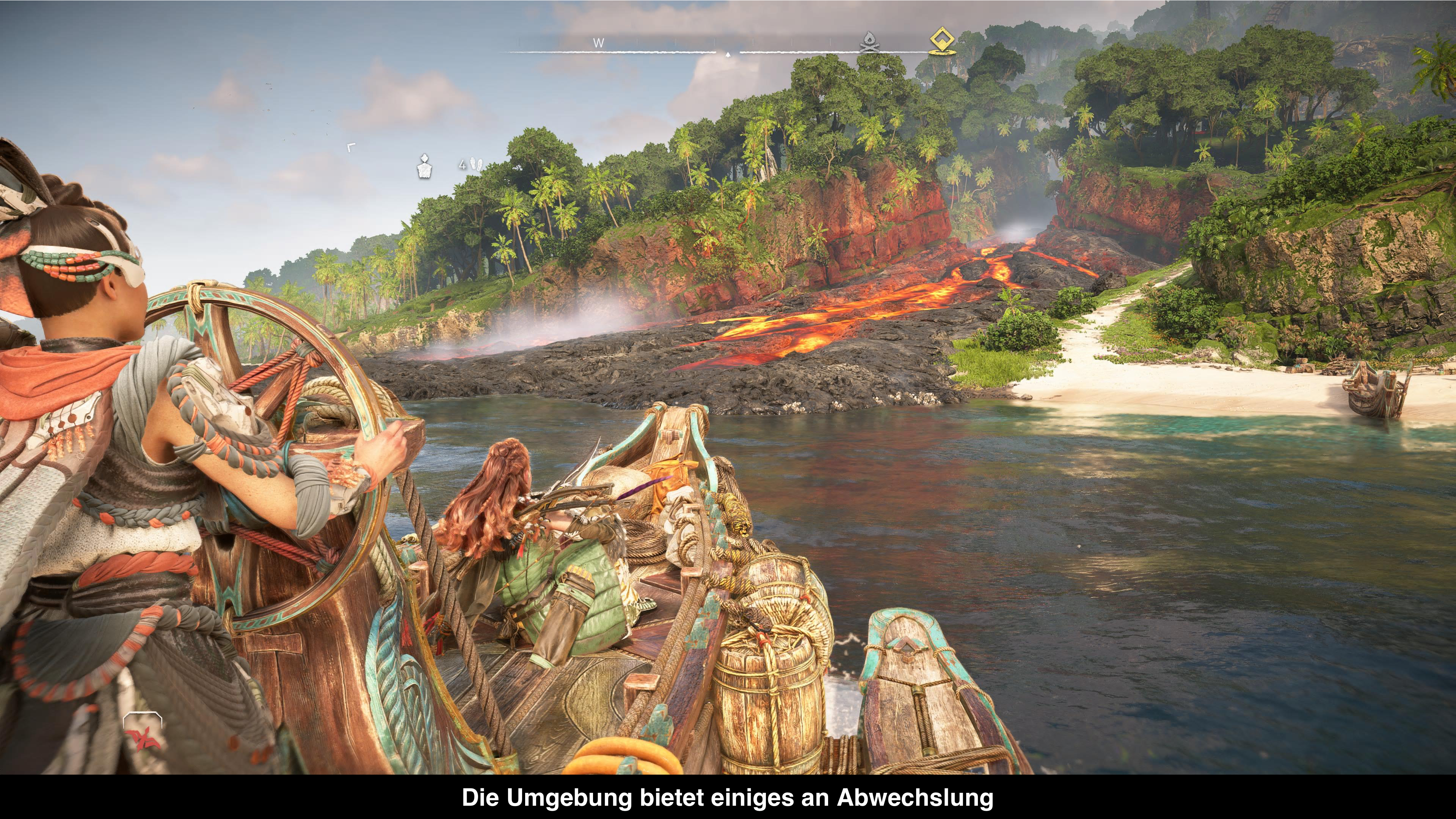 Dafür experimentiert man beim Gameplay deutlich mehr. Zum ersten Mal gilt es selbst die Welt zu erkunden, da man die Karte nicht wie gewohnt freischaltet und dann alle Quests abarbeitet, sondern oft in der Luft unterwegs ist. Auch die neuartigen Waffen machen die Kämpfe in Burning Shores deutlich interessanter. Gerade aber der Schlussabschnitt ist aber etwas das ich schon lange nicht mehr in einem Action-Adventure/Action-RPG gesehen haben und ein herrlich "klassischer" Bosskampf.