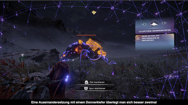 Spieler des Vorgängers dürften sich spielerisch direkt wohlfühlen im verbotenen Westen. Bereits nach kurzer Zeit öffnet sich die riesige Welt und man wird mit Icons auf der Karte nahezu erschlagen. In der Hinsicht bekommt man erste Ubisoft-Vibes, die aber glücklicherweise trügen. Denn die Liebe zum Detail wurde drastisch erhöht im Vergleich zum Vorgänger. Zum Beispiel gibt es reihenweise Nebenaufgaben, die nun jeweils ihre eigene kleine Geschichte erzählen und zum Teil sogar mehrteilig sind. Auch das Freischalten der Langhälse wurde deutlich abwechslungsreicher gestaltet und jeder Langhals bietet eine eigene kleine Herausforderung. Das Kampfsystem wurde ebenfalls verbessert, insbesondere was den Nahkampf angeht. Hier kann man nun ganze Combos freischalten, die den Nahkampf abwechslungsreicher, aber auch anspruchsvoller machen. Davon profitieren vor allem die Kämpfe gegen andere Menschen, ein Schwachpunkt des Vorgängers. Natürlich gibt es auch neue Waffen und Tricks um gegen die vielen Maschinen anzukommen, die nun noch gefährlicher wirken. Leider spielt einem dabei manchmal die Kamera einen Strich durch die Rechnung und im ungünstigsten Fall sorgt es auch gleich fürs eigene Ableben.