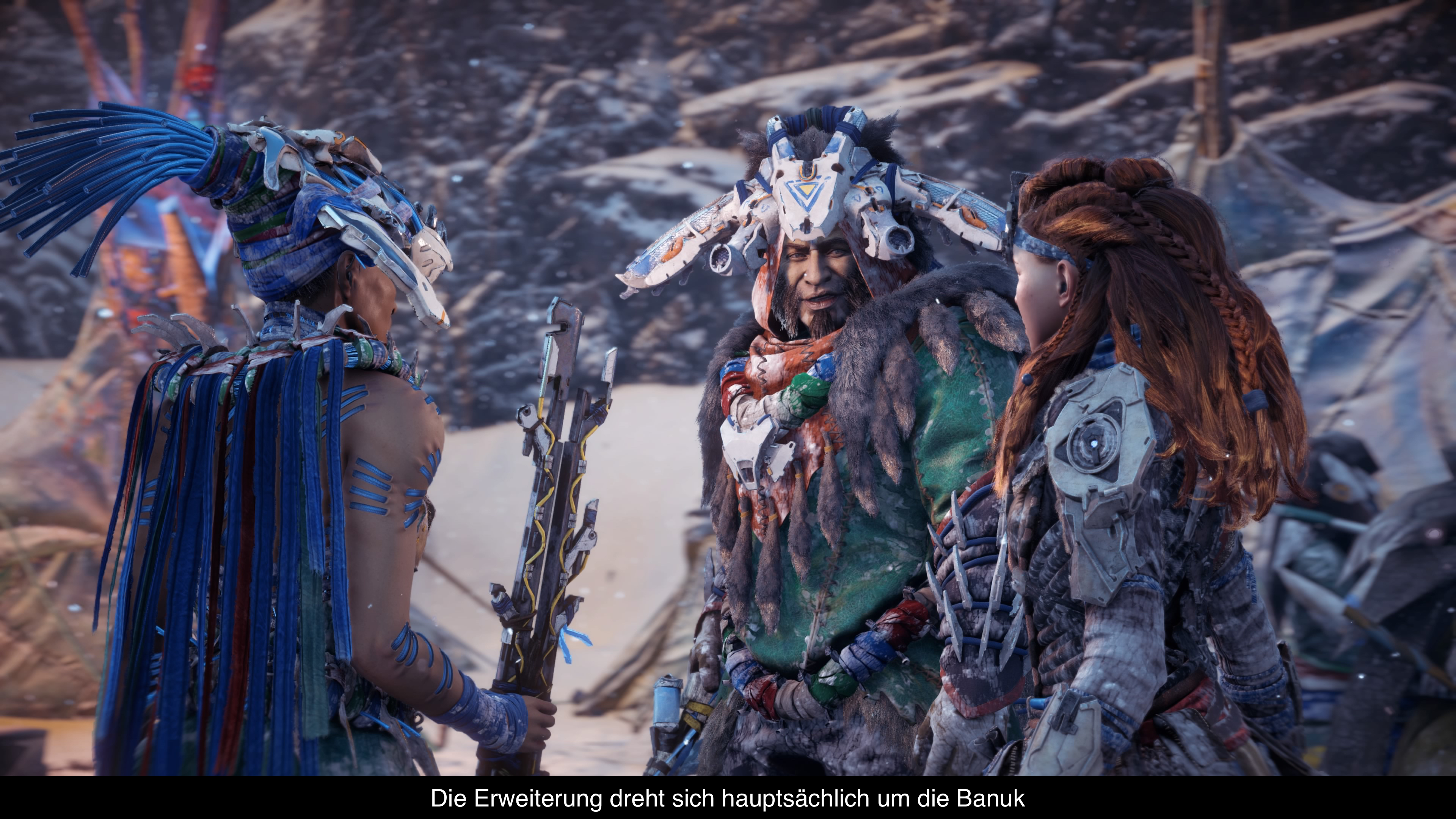 The Frozen Wilds setzt den Besitz des Hauptspiels voraus und wird aktiviert, indem man das völlig neue Gebiet der Erweiterung betritt. Dieses Gebiet nennt sich “Der Schnitt” und stellt die Heimat der Banuk dar. Dabei ist das Gebiet von Schnee überzogen und alles andere als der perfekte Ort um sich niederzulassen. Doch die Banuk sehnen sich genau nach dem und die Kälte und Härte findet man auch in ihrer Kultur wieder. So bietet die Erweiterung zahlreiche Einblicke in das alltägliche Leben der Banuk und bietet einige interessante Geschichten rund um ihre Traditionen und Lehren. Übergreifend ist jedoch ein Vulkanausbruch für die Geschichte verantwortlich, welcher die Banuk in Aufruhr versetzt. Ihr macht euch dorthin auf, um die Hintergründe zu untersuchen und dabei lernt man auch mehr über Project Zero Dawn und seine Komponenten kennen.