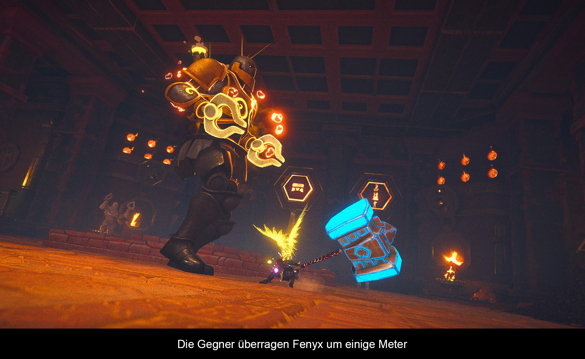 Dem Weltendesign gebührt ein großes Lob. Die Insel überrascht mit vielen unterschiedlichen Ecken und lädt somit zum Erforschen ein. Auch die schiere Größe der Welt beeindruckt. Man merkt, dass diese Insel nicht für Menschen geschaffen wurde, sondern für Götter. Alles ist im Vergleich zu unserer Heldin riesig. Schon alleine die Burg von Ares könnte glatt ein eigenes Level sein. Auch die Schmiede von Hephaistos besitzt Ausmaße, die einem Gott der Schmiedekunst gerecht werden. Der Spieler wirkt verloren und die vereinzelten (zerstörten) Siedlungen von Menschen wirken fast schon deplatziert. Doch auch bei den Gegnern macht der Gigantismus keinen Halt. Lediglich normale Soldaten sind von Fenyx Größe. Alle anderen Kreaturen überragen unsere Heldin um ein Vielfaches. Unglücklicherweise ist das Gegnerdesign hier nicht so gelungen, wie es die Welt wirken lässt. Es gibt gefühlt sechs unterschiedliche Gegnertypen, welche teilweise nur eine andere Farbe besitzen. Zum Ausgleich gibt es wenigstens unterschiedliche Angriffsmuster. Wer die Welt genauer beobachtet, wird außerdem feststellen, dass sehr viel kopiert wurde. Immer wieder findet man dieselben Texturen und grafischen Elemente.
