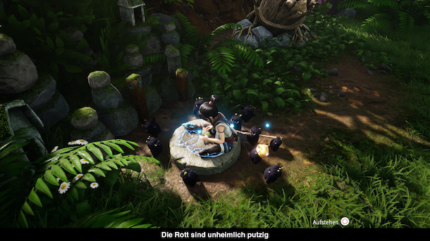 Die namensgebende Kena ist im Spiel eine Geisterführerin. Das heißt sie hilft den Seelen verstorbenen ins Jenseits zu gehen, falls diese sich an diese Welt klammern. Dabei ist sie aber eigentlich auf der Reise zum mystischen Bergschrein und kommt auf ihrem Weg durch ein Dorf dessen Geheimnisse sie aufdecken möchte. Zur Hilfe kommen ihr die Rott, kleine putzige Wesen, die euch auf eurer Reise begleiten und immer wieder aushelfen. Erzählt wird die Geschichte meist in kürzeren Zwischensequenzen und in einigen Gesprächen im Spiel selbst. Leider kann die Geschichte aber nicht vollends überzeugen weil die anderen Charaktere der Welt einem nie sonderlich ans Herz wachsen.