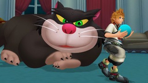 Die PS2-Spiele zeichneten sich vor allem durch ihr simples, aber doch forderndes Gameplay aus. Anders als beispielsweise in früheren Final Fantasy Spielen hat man es nämlich nicht mit rundenbasierten Kampfsystem zu tun, sondern hier wird alles in Echtzeit ausgewählt und ausgeführt. Man hat also Tasten zum Angreifen, Blocken und Springen und mehr als genug Möglichkeiten die Gegner zu vermöbeln. Zudem hat man das Kampfsystem gehörig überarbeitet und so gibt es nun spezielle Aktionen, die per Steuerkreuz ausgewählt und mit der Dreiecks-Taste ausgeführt werden. Darunter verstecken sich dann besondere Angriffe, Items oder aber auch Magieangriffe. Führt man eine dieser Aktionen aus, wird automatisch der nächste ausgewählt und die ausgeführte Aktion kann erst nach etwas Erholungszeit wieder benutzt werden. Ebenso per Steuerkreuz wählt man den sogenannten D-Link aus. Hierbei übernimmt man Angriffe von bestimmten Charakteren, um sich so verschiedenen Situationen besser anpassen zu können. Bei einem D-Link mit Aqua erhält man zum Beispiel Zugriff auf zahlreiche Zauber, die einem das Leben erleichtern können. Eine Schwäche hat aber das Ganze. Weil man sich nämlich mit dem Analogstick fortbewegt, muss man zum Auswählen der Sachen stehen bleiben, was in manchen Kämpfen zu unnötigem Stress führt. Des Weiteren helfen die sogenannten Shotlocks mit mehreren Gegnern fertig zu werden. Man visiert dabei in kurzer Zeit so viele Gegner, wie nur möglich an und lässt dann eine wahre Salve an Angriffen auf die anvisierten Ziele los. Hin und wieder wird man vom Spiel aber auch belohnt, denn wenn man hauptsächlich bestimmte Angriffe bzw. Aktionen ausführt, kann es dazu kommen, dass der Spieler in einen besonderen „Command Style“ versetzt wird. Nutzt man beispielsweise hauptsächlich Blitzmagie, kommt man in den „Thunderbolt“ Modus, in dem die Gegner dann mit Blitzen geröstet werden. Man wird also stärker und führt dem Stil entsprechende coole, neue Angriffe aus. Nach kurzer Zeit ist der Spaß aber vorbei, wenn das Ganze in einem verheerenden Finisher endet. Auf den ersten Blick können die vielen Neuerungen einen auf jeden Fall überfordern, jedoch lernt man trotz kleinerer Schwächen schnell damit umzugehen und dann macht es so viel Spaß, wie eh und je. Vor allem im späteren Spielverlauf wird es auch anspruchsvoller und dann kommt man nicht mehr nur mit stupidem Angreifen weiter. Jedenfalls funktioniert das Kampfsystem absolut flüssig und muss sich vor niemandem verstecken.