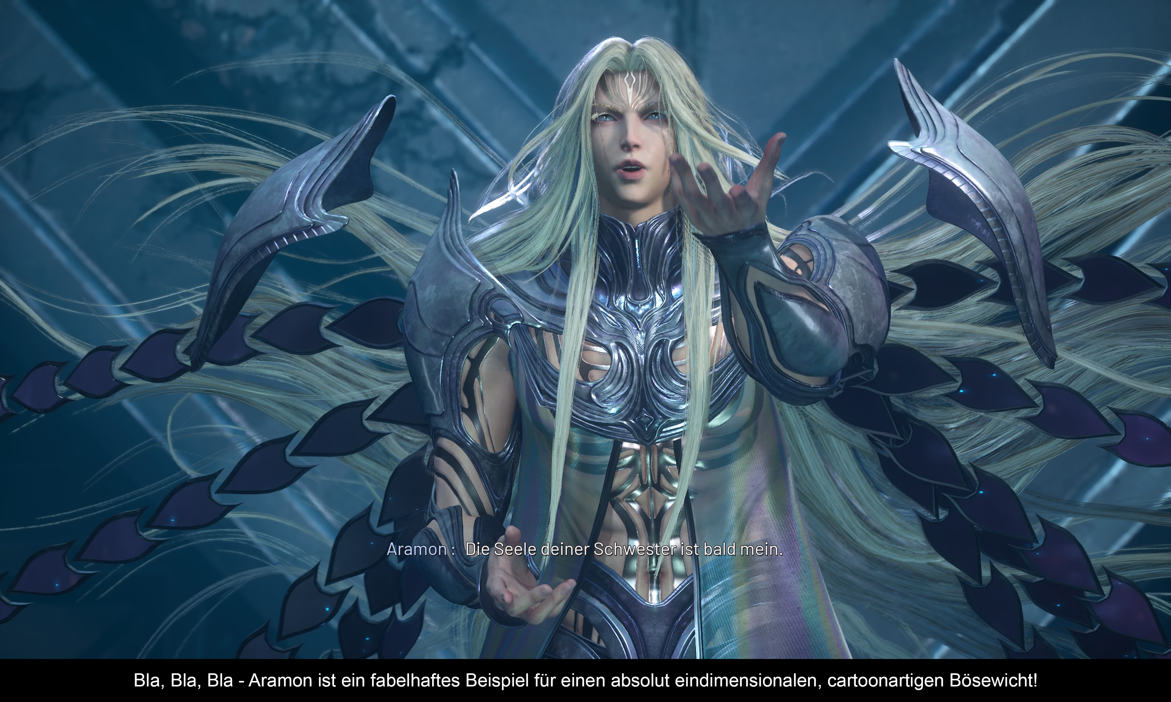 Ihr seht schon, einfallslos und austauschbar trifft es ziemlich gut. Verschlimmert wird das Gefühl durch die dilettantischen Zwischensequenzen und Gespräche. Wer auch immer für die Dialoge zuständig war, sollte bitte in Zukunft jemand anderen ranlassen. Auch die Wendungen sind allesamt zum Kopfschütteln – ja, Lord Arena ist auch ein Voidrax, aber einer von der guten Sorte. Der Oberscherge Aramon ist dagegen noch viel böser als der Imperator Hochburg. Doch er kann – durch was auch immer – alle Helden beeinflussen, wodurch diese sich gegen Kaser wenden. Erst nach einer ordentlichen Tracht Prügel kommen sie wieder zu Sinnen. Jegliche Figuren im Spiel werden übertrieben eindimensional dargestellt und keiner der Protagonisten verdient auch nur annähernd so etwas wie Mitgefühl vom Spieler. Zudem kann Arena einfach nicht die Klappe halten und quasselt die ganze Zeit rum…