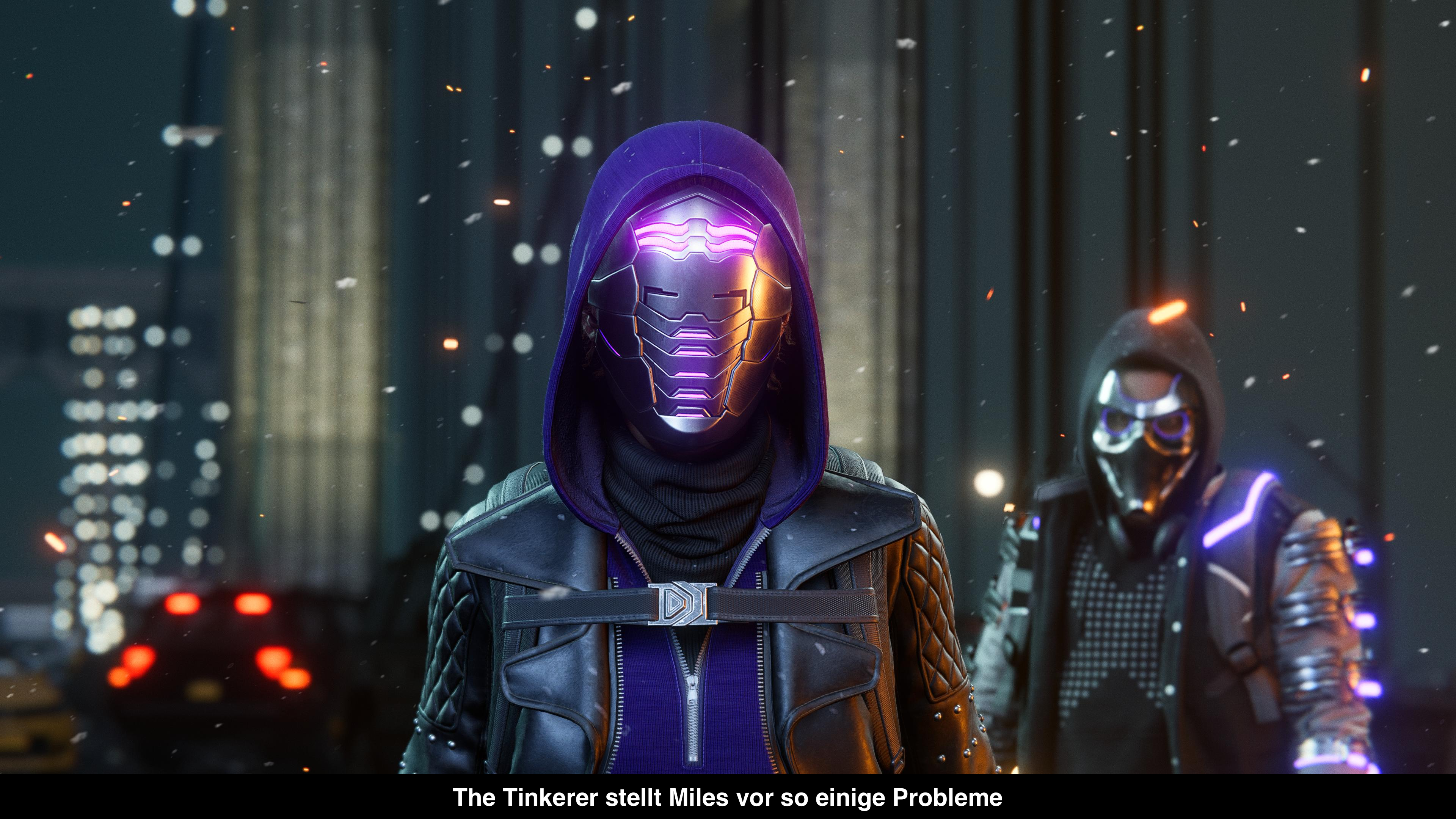 Standardmäßig spricht Miles deutsch und die Synchronsprecher machen auch einen guten Job. Wer möchte, kann aber auch auf englisch spielen und hier wirken die Stimmen deutlich authentischer. Etwas nervig ist nur ein Bug bei dem Miles in Kampfszenen trotzdem hin und wieder ein paar deutsche Sätze sagt, was natürlich der Atmosphäre schadet. Dafür gibt es einen etwas Hip-Hop lastigeren Soundtrack, der aber perfekt zu den Charakteren und dem Spiel passt und die Szenen perfekt unterstreicht. Insbesondere das Theme sticht da heraus und so unterscheidet sich das Spiel merklich von der Atmosphäre des Vorgängers.