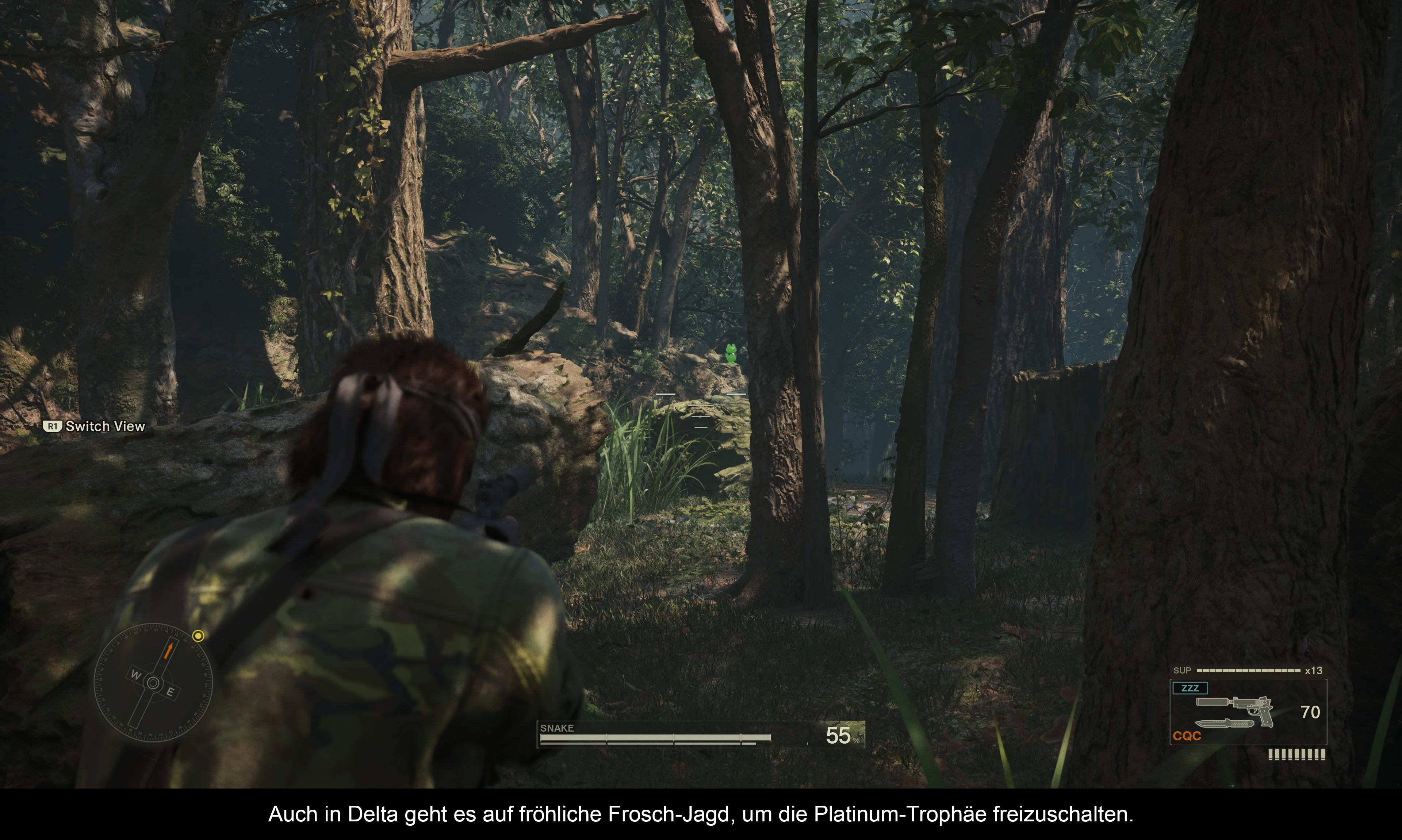 Während die Story unverändert geblieben ist, hat Konami beim Gameplay kräftig nachgebessert. Schon damals galt MGS3 spielmechanisch als etwas angestaubt – vor allem wegen der eingeschränkten Bewegungsmöglichkeiten und der starren Kameraführung. Das spätere Update Metal Gear Solid 3: Snake Eater – Subsistence sorgte zwar für spürbare Verbesserungen, konnte jedoch mit Genre-Konkurrenten wie Splinter Cell nicht Schritt halten. Mit Metal Gear Solid Delta präsentiert sich das Gameplay nun jedoch fast wie neu. Die auffälligste Neuerung ist die frei bewegliche Third-Person-Kamera, die das Geschehen deutlich immersiver gestaltet. Hinzu kommen neue Schleich- und Duck-Positionen, die stark an MGS5 erinnern und Snakes Bewegungsrepertoire spürbar erweitern. Dadurch wird das Dschungelabenteuer in Russland wesentlich abwechslungsreicher. Ergänzt wird das Ganze durch zahlreiche Quality-of-Life-Optimierungen – etwa ein vereinfachtes Camo-System, das sich nun mit wenigen Tasteneingaben bedienen lässt, anstatt ständig ins Menü zu wechseln. Auch das Nahkampfsystem CQC, das im Original noch etwas umständlich war, funktioniert nun deutlich intuitiver. Gleichzeitig wurde die KI überarbeitet: Gegner sind nun wachsamer, reagieren schneller auf Bewegungen und erspähen Snake auch aus größerer Distanz.