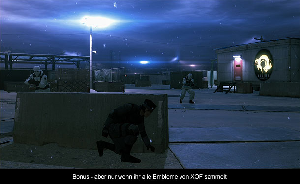 Spielerisch hat sich seit „Metal Gear Solid 4“ einiges getan. Denn „Ground Zeroes“ führt erstmals eine wirkliche offene Welt in der Serie ein. So kann man nun die komplette feindliche Basis mit allen Anlagen, Wachtürmen und Untergrundtunneln erkunden und es werden einem kaum Grenzen gesetzt. Zwar sind einige Türen verschlossen, aber die Größe des Levels sollte genügend Raum dafür bieten. Dabei muss man jedoch immer wieder aufpassen, dass man nicht entdeckt wird, denn vorbei sind die Zeiten des Radars. Man muss sich nun selber umsehen und Feinde entdecken, wobei diese markiert werden können, um sie nicht so schnell aus den Augen zu verlieren. Wird man doch mal entdeckt, erhält man ein kurzes Zeitfenster, in dem man den Gegner noch ausschalten kann. Ansonsten wird der Alarm aktiviert, es wird Verstärkung angefordert und man sollte lieber das Weite suchen. Dabei kann man sich natürlich fast wie in einem First Person Shooter durch die Gegnermaßen kämpfen, aber sinnvoller ist es sich in Gräsern und Büschen oder neuen Gebäuden zu verstecken und abzuwarten bis der Alarm abgeschaltet wird. Etwas nervig kann dabei sein, dass scheinbar unendlich viele Feinde vorhanden sind. Denn sobald eine Gruppe ausgeschaltet ist, kommt direkt die nächste und es nimmt nie ein Ende. Auch komisch ist das Verhalten der KI. Diese übersieht während eines Alarms gerne umherliegende Leichen, sobald dieser abgeschaltet wird und die Wache wieder an der gerade noch uninteressanten Leiche vorbeikommt, beginnt der Alarm von vorne und man darf sich weiter verstecken. Ansonsten dürften sich Metal Gear Fans direkt wieder heimisch fühlen, da die Steuerung kaum bis marginal verändert wurde. Komplett neu sind jedoch Fahrzeuge, die erstmals auch selber gesteuert werden können. Wer also in „Ground Zeroes“ schnell von A nach B kommen möchte, kann sich auch einen der Jeeps einer Wache zu eigenmachen und dann durch die Welt Fahren. Dabei steuern sich alle Fahrzeuge recht intuitiv und könnten so manchem anderen Open World Spiel Konkurrenz machen. Für „Ground Zeroes“ sind sie aber noch nicht wirklich sinnvoll. Neben der Hauptmission „Groud Zeroes“ werden nach dem Durchspielen übrigens noch fünf weitere Nebenmissionen freigeschaltet, die am selben Ort stattfinden, aber andere Ziele und meist auch andere Tageszeiten bieten, ansonsten aber ziemlich uninspiriert daherkommen und kaum für Spannung sorgen können.