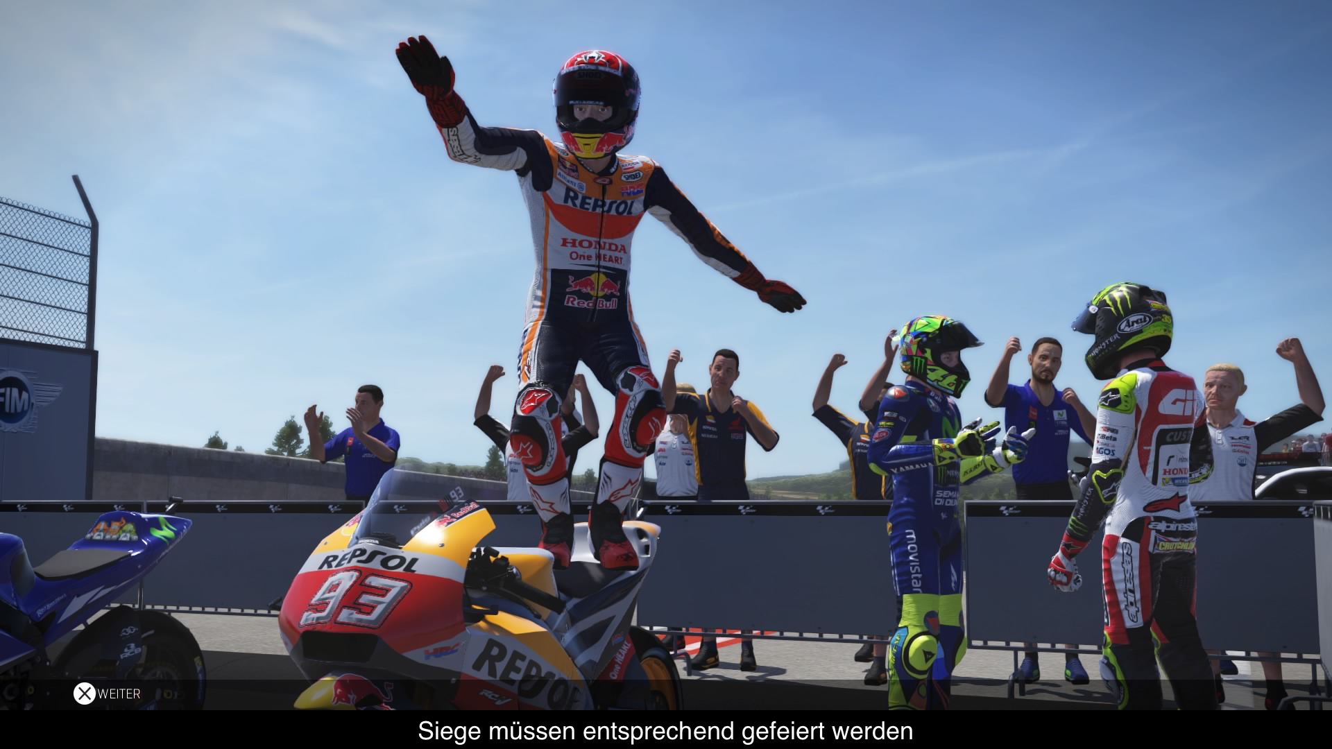 Wie es sich für ein offizielles MotoGP Spiel gehört, ist auch hier wieder alles lizenziert. Angefangen von der Moto3 über die Moto2 Klasse bis letztendlich hin zur MotoGP ist alles dabei. Die Entwickler legen zwar schon Wert auf Authentizität allerdings sehen die Fahrer im Spiel auf der Rennstrecke, wenn man sie zum Beispiel in der Box oder am Ende des Rennens sieht, nicht unbedingt aus wie ihre echten Vorbilder. Marc Marquez ist von Valentino Rossi nicht so ganz zu unterscheiden. Hier wäre mit ein wenig mehr Arbeit mehr möglich gewesen. Ich habe eine kleine Hoffnung was MotoGP 18 an geht. Milestone wechselt innerhalb ihrer Spielereihe auf eine neue Engine: Unreal Engine 4. Die Erwartungen sind dementsprechend schon hoch. Sowohl die letzten Titel als auch der aktuelle Ableger sind noch nicht in der neuen Generation angekommen und so langsam wird es Zeit, das Milestone den nächsten Schritt macht.