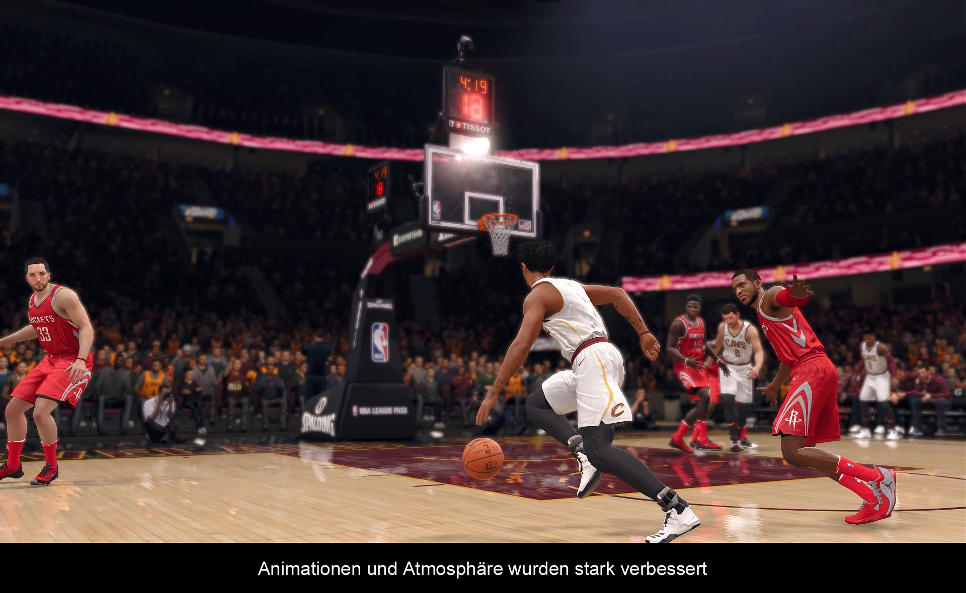 Ein Bereich, wo man sich ebenfalls gesteigert hat, ist das Gameplay, welches im Vergleich zu 2K deutlich freundlicher gegenüber Neulingen ist. Die Steuerung ist leicht erlernt, und wird einem während des Spielens (und während der Ladezeiten) auch durch gelungene Tutorials und Hilfstexte sehr gut beigebracht. Darüber hinaus ist es auch hilfreich, dass sich das Gameplay inzwischen sehr an 2K orientiert. Während 2K jedoch über deutlich mehr Bewegungsvarianten verfügt, hat LIVE 18 die Oberhand beim Wurf-Meter, der im Vergleich zur Konkurrenz einfacher zu bedienen ist. Darüber hinaus fand ich, dass das Spiel relativ arcadig wirkt, was man zum Beispiel daran sehen kann, dass Drives und Dunks (vor allem mit Star-Spielern) immer noch der Beste Weg zu Punkten ist. Aber dies ist nichts Schlimmes meiner Meinung nach. Und auch die KI zeigt offensichtliche Verbesserungen, was man beispielsweise an den besseren Laufwegen sehen kann. Alles in allem bringt das Gameplay alles mit, was man sich als Fan wünscht: Eine solide Steuerung mit einem schnellen Weg zum Erfolg.