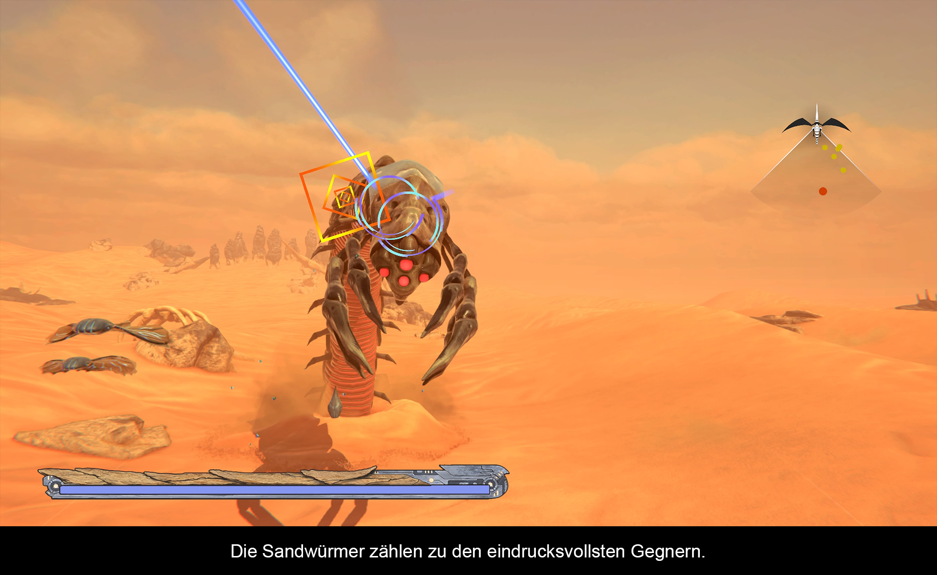 Technisch gibt sich der Rail Shooter zwiespältig. Wie erwähnt laufen die Zwischensequenzen nicht 100% flüssig, während es beim Spielen an sich kaum in die Knie geht und fast durchweg flüssig läuft, was sich wiederum durch das Fade In von Objekten erkauft wird. Leider ist Panzer Dragoon aber kein mega Grafikbrett, weshalb die nicht perfekte Bildwiederholungsrate keine Ausrede ist. Hier hätte es mehr Feintuning bedarf. Auch die Ladezeiten sind aus der Hölle! Vor Zwischensequenzen, Nach Zwischensequenzen, vor der Abrechnung, nach der Abrechnung etc. Auf der anderen Seite kann sich der orchestrale Soundtrack aber auch heute noch hören lassen und es gibt sogar noch einen neuen Soundtrack, den man sich aber auch hätte sparen können.