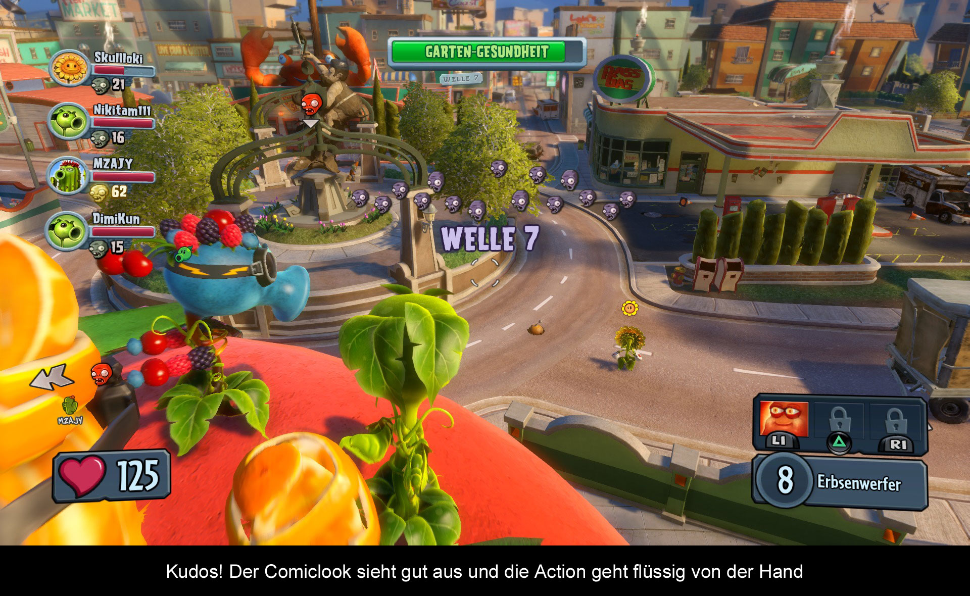 Man mag es kaum glauben aber „Plants vs. Zombies: Garden Warfare“ gehört zu den bislang schönsten Spielen, die ich auf der PS4 gesehen habe. Das farbenfrohe Design der Spielewelt sorgt in Kombination mit der technischen Qualität der Frostbite Engine für eine superbe Optik, die mit sauberen 60fps dargestellt wird. Slowdowns sucht man vergebens. Einzig die Ladezeiten könnten etwas kürzer sein. Außerdem gibt es vor allem zu Beginn eines jeden Spiels einige kurze Momente, wo die Texturen erst bruchstückartig nachgeladen werden.