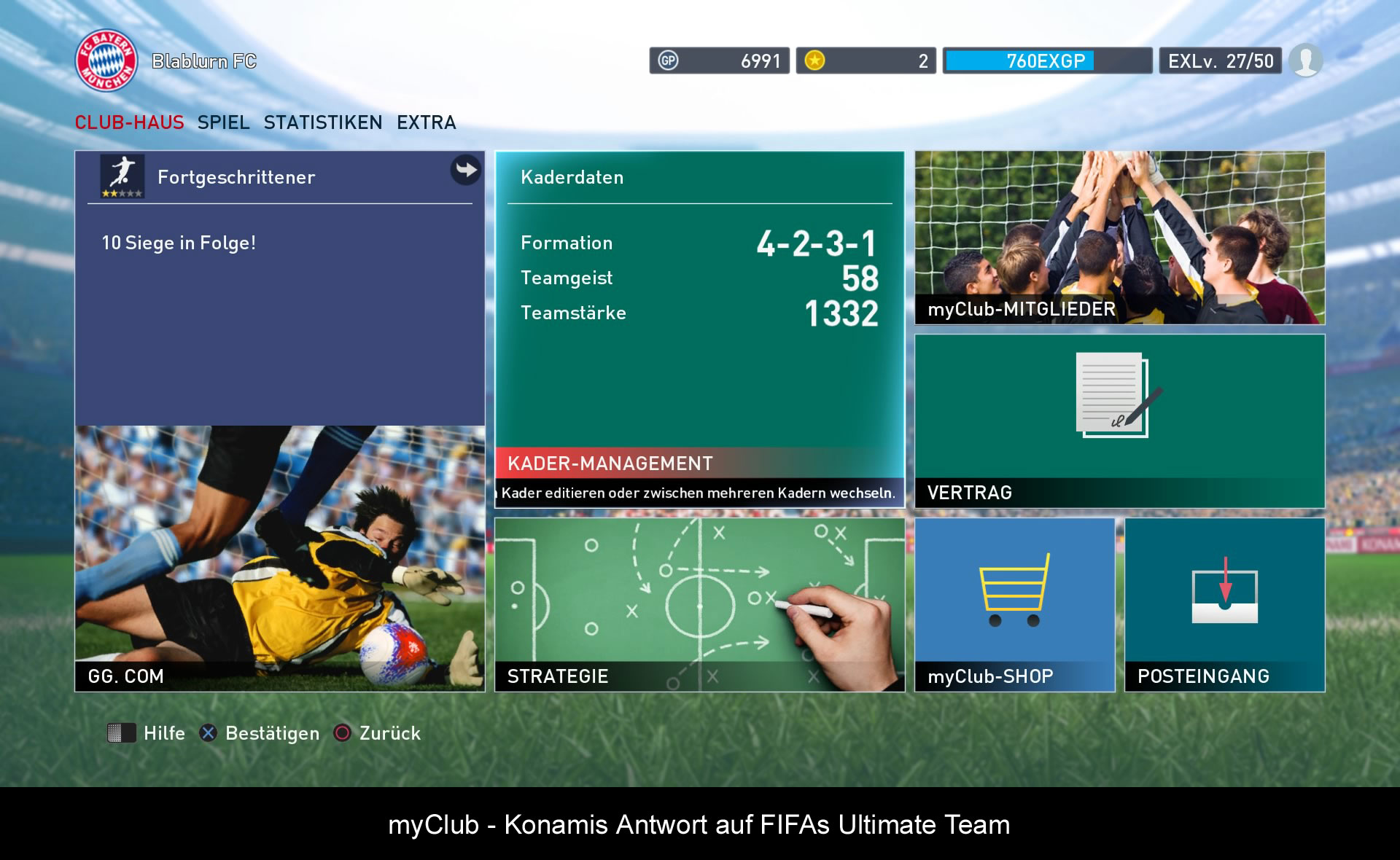 Im Vordergrund des diesjährigen Spiels steht der generalüberholte myClub Modus, wo es ähnlich, wie bei Ultimate Team darum geht nach und nach eine Top-Mannschaft zusammenzustellen. Anstelle von Packs gibt es Agenten. Diese Agenten helfen anschließend dabei einen Spieler für eure gewünschte Position zu finden. Bezahlt werden die Herren entweder mit GP Punkten, die man im Anschluss eines jeden Spiels bekommt oder mit der PES Währung, die man für richtiges Geld kaufen kann. Danach kümmert man sich um die Aufstellung der Mannschaft. Ähnlich, wie bei FIFA geht es auch hier darum eine möglichst gute Team-Chemie zu erschaffen. Umso besser die Chemie untereinander, desto stärker agieren die Kicker auf dem Platz. Außerdem sollte man stets ein Auge auf die Verträge und die Kondition der Mannschaft werfen. Läuft zum Beispiel ein Vertrag aus, kann er mit Hilfe von GP Points wieder verlängert werden. Und das Gleiche gilt auch für die Fitness. Was den Modus jedoch von FIFAs Ultimate Team unterscheidet ist die Tatsache, dass es keinen aktiven Transfermarkt gibt. Wenn man zum Beispiel einen seiner Spieler abgeben möchte, bekommt man lediglich einen festgeschriebenen Betrag überwiesen. Alles in allem wirkt das Geschehen ohne den Transfermarkt deutlich ruhiger und übersichtlicher. Da man für jedes gewonnene Spiel eine angemessene Menge an Punkten bekommt, dauert es in der Regel nicht lange, bis man sich anständige Spieler besorgen kann. Und hat man schließlich sein Team zusammengestellt, hat man die Auswahl aus verschiedenen Modi. Entweder kann man sein Glück gegen den Computer versuchen, oder man wagt den Schritt auf die große Bühne und tritt online gegen einen menschlichen Spieler an. Wie bei FIFA geht es darum von der untersten Liga in die höchste Spielklasse aufzusteigen. Am Meisten hat mir aber bislang die Simulations-Liga gefallen, wo man sein Team gegen andere KI-Mannschaften antreten lassen kann. Ohne den Stress selber spielen zu müssen, kann man in Ruhe dabei zusehen, wie sich die eigene Mannschaft im Duell gegen ein anderes Team schlägt. Auch hier geht es darum in die höchste Liga aufzusteigen. Alles in allem lässt sich feststellen, dass sich Konami sehr viel Mühe mit dem myClub Modus gegeben hat. Und obwohl sich die Entwickler ihre Inspiration eindeutig von EAs Ultimate Team gezogen haben, gibt es dennoch zahlreiche Unterschiede und Elemente, die am Ende des Tages dafür sorgen, dass der myClub Modus einen eigenen Charakter besitzt.