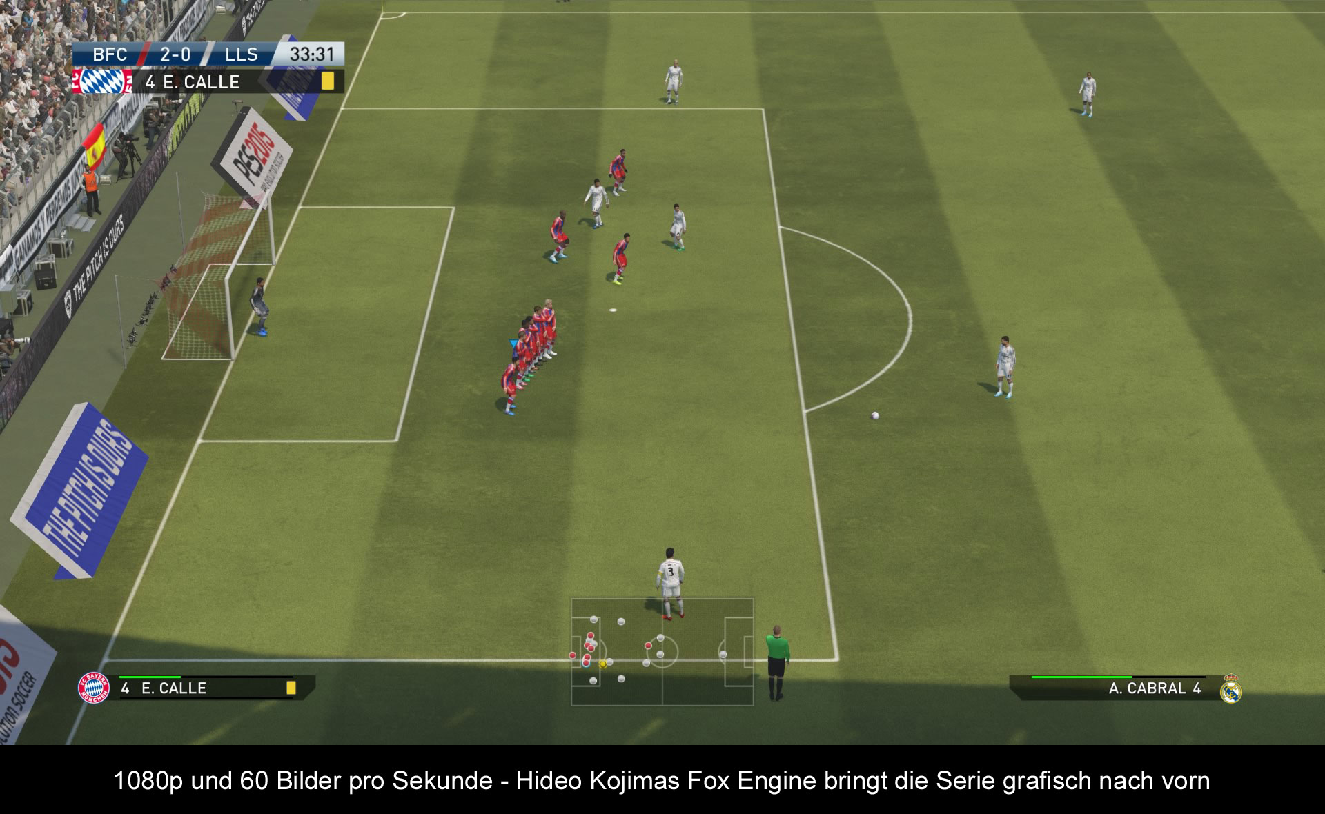 Wie auch im vergangenen Jahr basiert die technische Grundstruktur des Spiels auf Kojimas Fox Engine. Im Vergleich zum Vorjahresprodukt läuft das Geschehen aber inzwischen deutlich flüssiger über den Bildschirm. Darüber hinaus können sich PS4 Spieler extrem glücklich schätzen. Nur auf der Sony Konsole läuft das Spiel in wunderschönen 1080p und 60fps. Alle anderen Versionen zeigen hingegen deutliche Abweichungen. Trotzdem sollte man keine Grafikbombe erwarten. Obwohl die PS4 für ihre grafische Power bekannt ist, kommt sie bei PES nur bedingt ins Schwitzen. Und was die virtuelle Darstellung der einzelnen Kicker angeht, erwartet dem Spieler ein zweischneidiges Schwert. Während die Stars meistens überragend aussehen, sehen die vielen unbekannten Kicker oftmals sehr generisch und langweilig aus. Ein großes Lob verdienen jedoch die zahlreichen Animationen, die äußerst rund und geschmeidig aussehen. Und auch die Ladezeiten sind erfrischend kurz. Ebenso kurz ist aber auch die Liste an verfügbaren Stadien. Hier wäre es wünschenswert gewesen, wenn man uns ein wenig mehr Auswahl zur Verfügung gestellt hätte. Des Weiteren erhoffe ich mir für das nächste Jahr ein schöneres Publikum, da die pixeligen Figuren des diesjährigen PES nur bedingt überzeugen können. Alles in allem wäre es schön, wenn nicht nur EA, sondern auch Konami nochmal ein wenig an der Grafikleistung ihrer Spiele schrauben könnten. Ein bisschen mehr ist da mit Sicherheit noch drin. Vor allem was die Publikumsdarstellung und das Stadiongefühl angeht.