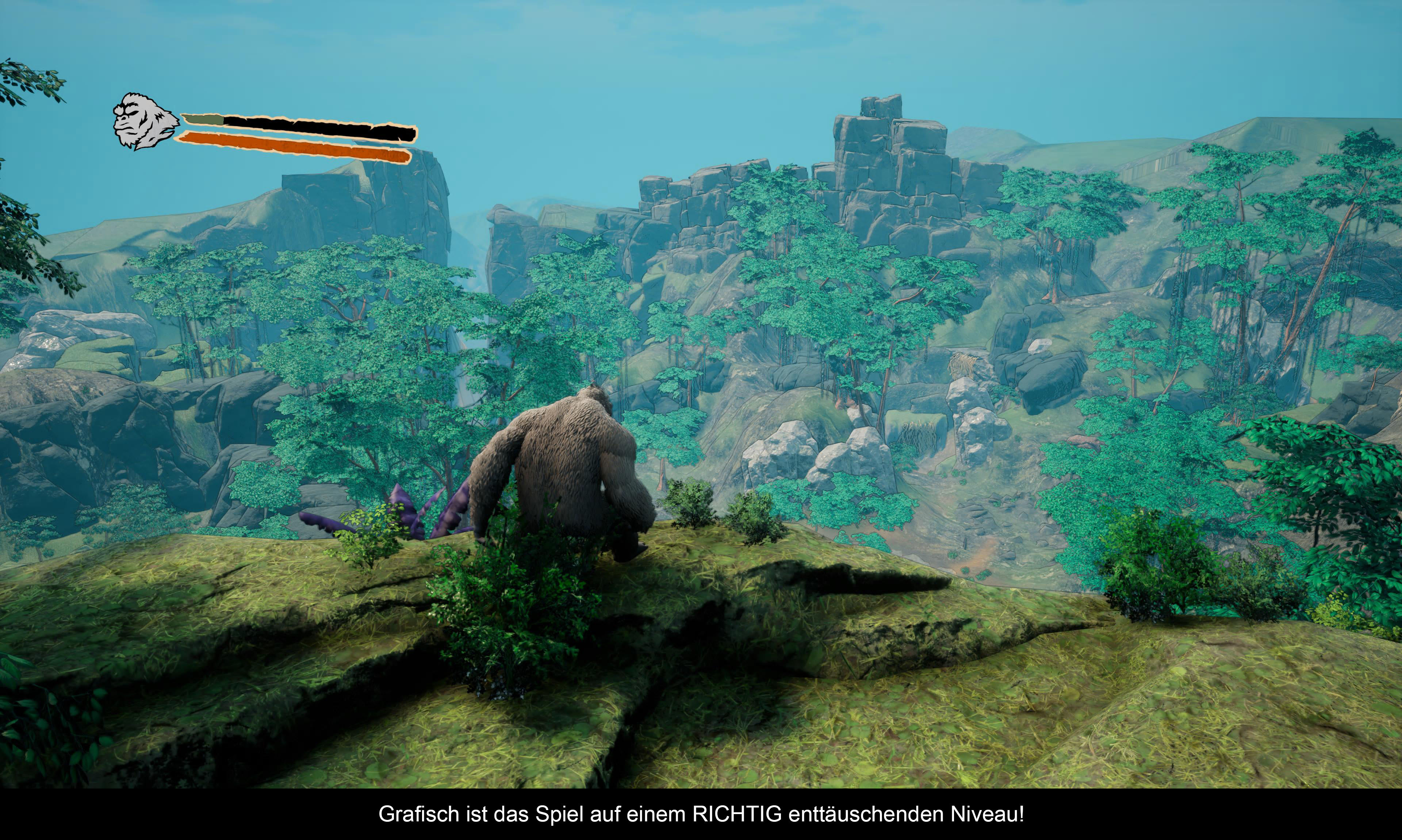 Und auch bei der Grafik offenbart das Spiel leider keine positiven Überraschungen. Ganz im Gegenteil: Während das Gameplay mit sehr viel Wohlwollen noch als passabel bezeichnet werden kann, ist der optische Aspekt des Titels eine wahre Katastrophe. Sämtliche Texturen - egal ob von den Monstern oder von der Umgebung - sind nicht mal ansatzweise PS5-würdig. Und auch die grundlegende Art Direction, die wohl auf eine Mischung aus Comic und Zeichentrick abzielt, kann zu keiner Zeit überzeugen. Mir kam es so vor, als wüsste das Spiel nicht, ob es auf Kinder oder Erwachsene abzielen möchte. Und ja, zusammenfassend erinnert Skull Island eher an einen PS3 Titel. Zwar scheint dies auf den ersten Blick eine relativ faule und eindimensionale Bewertung zu sein, aber leider entspricht sie der Wahrheit. Abschließend möchte ich noch auf den Sound eingehen, der eigentlich ganz OK ist. Die Dschungel-Umgebung klingt realistisch und die Schreie der Monster haben eine gute Tiefe. Die Hintergrundmusik ist passabel, aber schnell wieder vergessen.