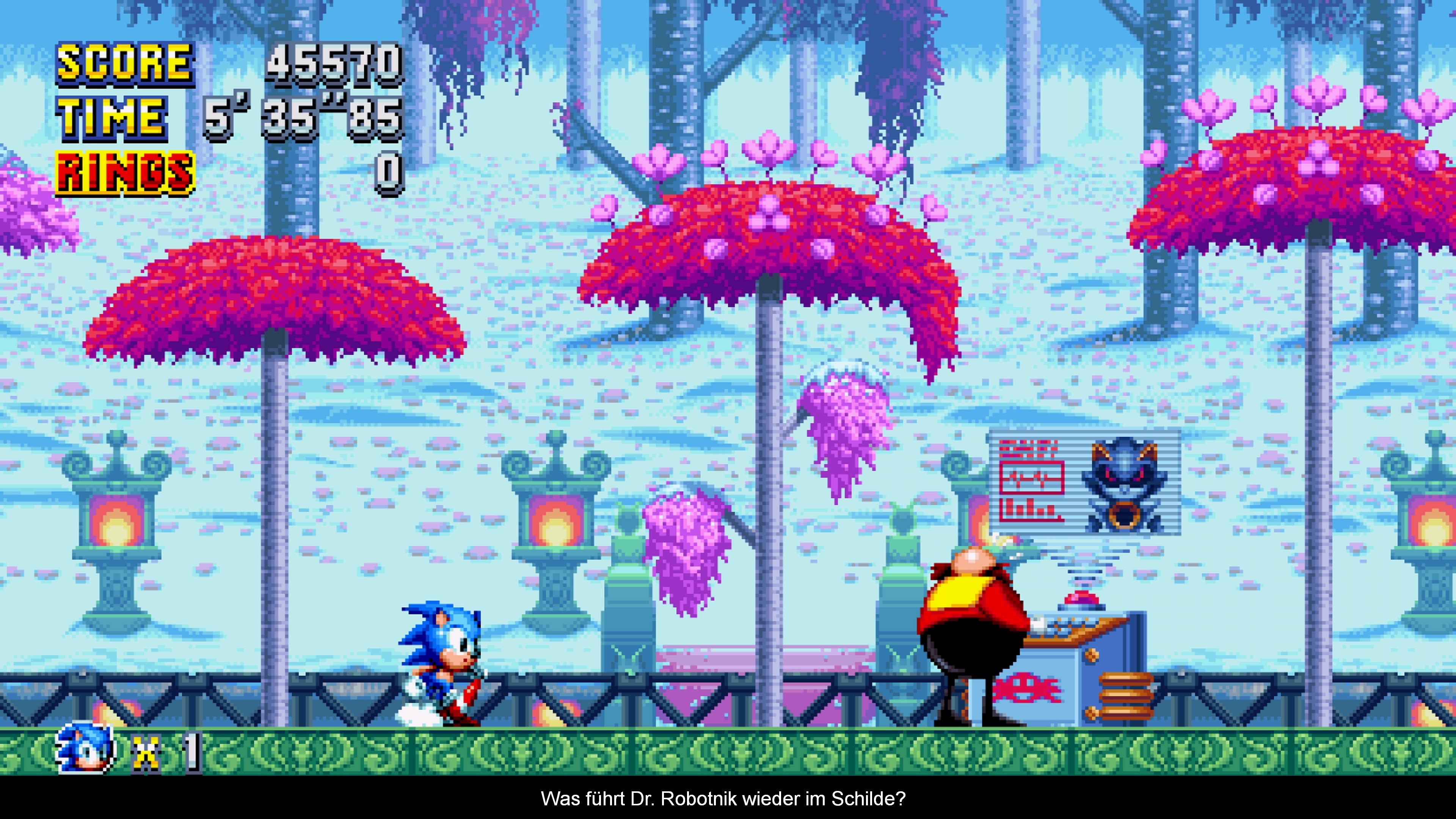 All das wurde in eine technisch hervorragende Hülle gepackt und überzeugt mit butterweichen 60 Bildern in der Sekunde inklusive mehreren Ebenen umfassenden Parallax Scrolling und einigen hübschen Skalierungs- und Rotationseffekten. Wenn es dann auch mal drunter und drüber geht, Sonic seinen Turbo zündet und durch Loopings, Korkenziehern und Tunnel rast, staunt man schon ein wenig, dass alles so unglaublich smooth läuft. Etwas, was man in Sonic 4 nicht hinbekommen hat. Auch die fabelhaften Animationen und geliebten Pausenanimationen wissen zu überzeugen. Hinzu kommt eine musikalische Untermalung, welche sich ebenfalls stark an Sonic 1 bis 3, bzw. Sonic CD orientiert und nicht durch unsägliche Remixe ersetzt wurde. Des Weiteren gibt es die klassischen Soundeffekte auf die Ohren. Auch Super Sonic ist wieder mit am Start, wenn man sich alle Chaos Emeralds gekrallt hat. Wer es noch mehr Retro möchte, kann zudem einen Scanline Effekt über das Bild legen und sich an der verwaschenen Röhren TV Optik ergötzen. Allerdings geht dies schon mächtig auf die Augen.