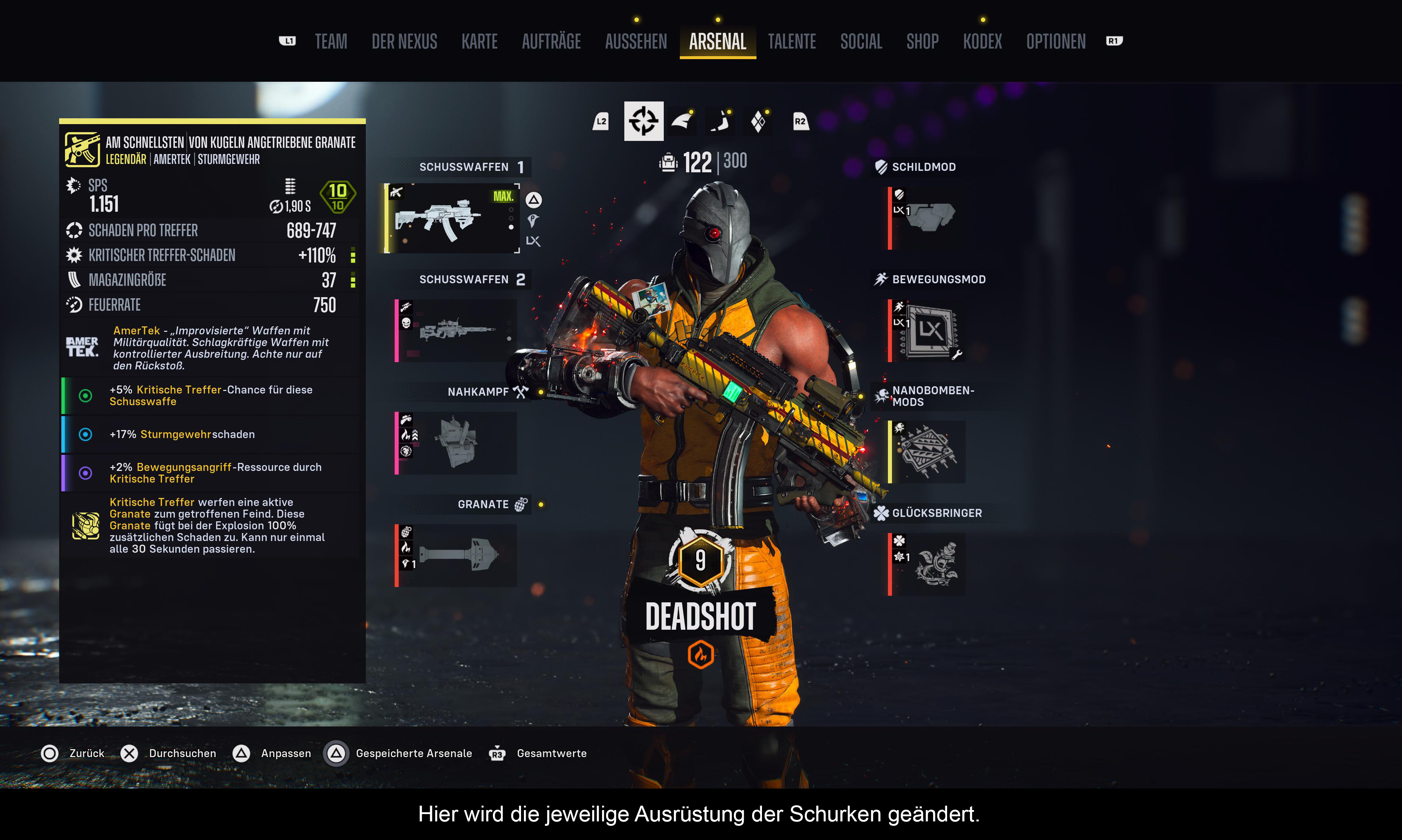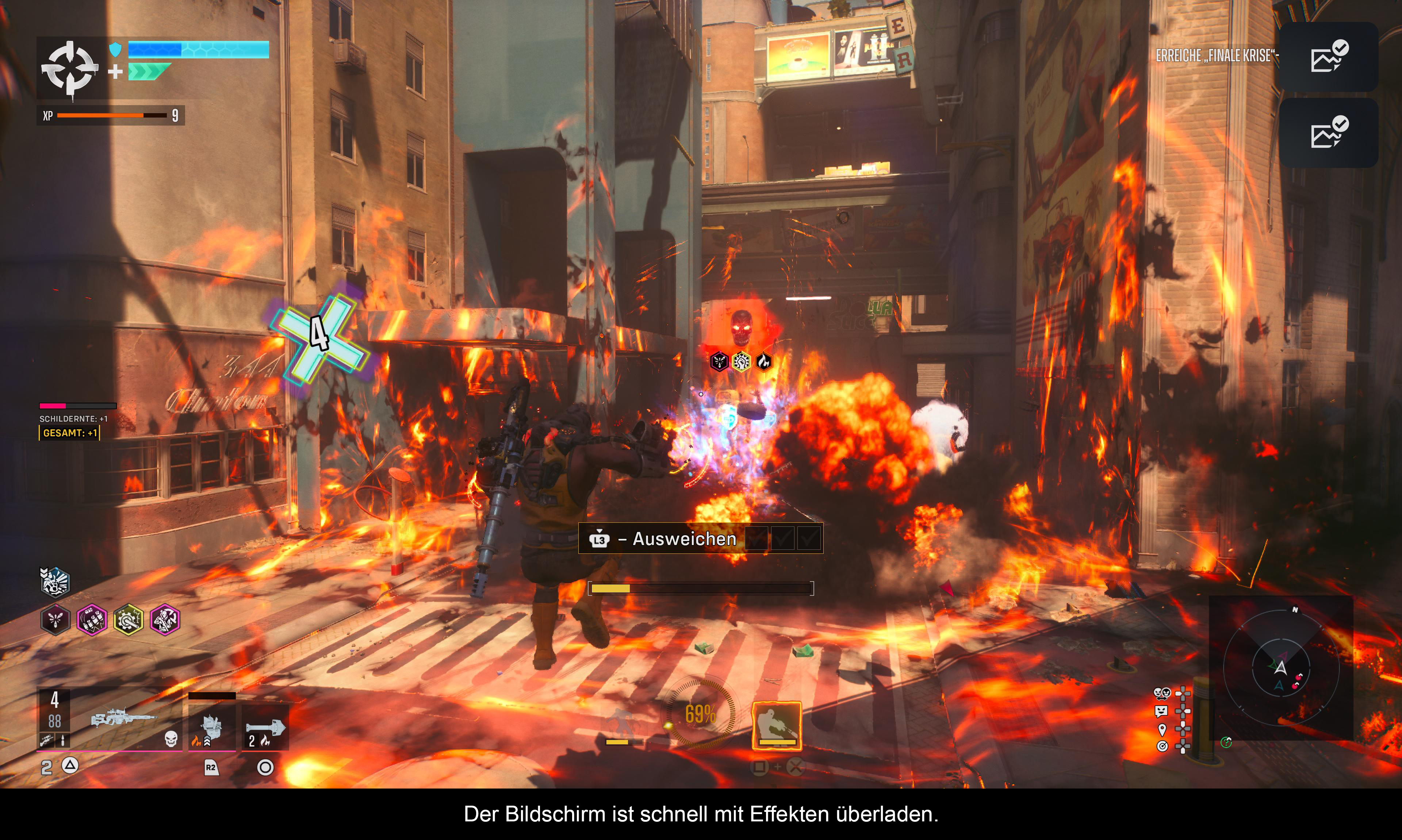 Grundlegend steuern sich alle vier Figuren gleich und unterscheiden sich nur durch den Waffentypen, den sie tragen können, wie auch den Einsatz eines Mobilitäts-Gadgets. Jeder hat so seine Stärken und Schwächen. Diese kann man im Skillbaum weiter ausbauen, damit in bestimmten Situationen der Kombozähler einen Boost ermöglicht. Leider lässt sich der Spielstil nicht komplett anpassen und Waffen, Schilde und Implantate genauer definieren. Diese verfügen ebenfalls über spezielle Effekte und einzigartige Werte: Einmal gibt es mehr Schaden auf Gegner X und ein anderes Mal wird zufällig eine Granate fallen gelassen. Doch Vorsicht bei der Auswahl der Waffen! Diese verfügen nicht nur über positive Eigenschaften. Mehr Schaden bei Gegner X wird in dem Fall durch weniger Schaden bei Gegner Y erkauft. Glücklicherweise erlaubt es das Spiel, bestimmte Aspekte an den Waffen zu ändern und neue Modifikationen anzubringen.