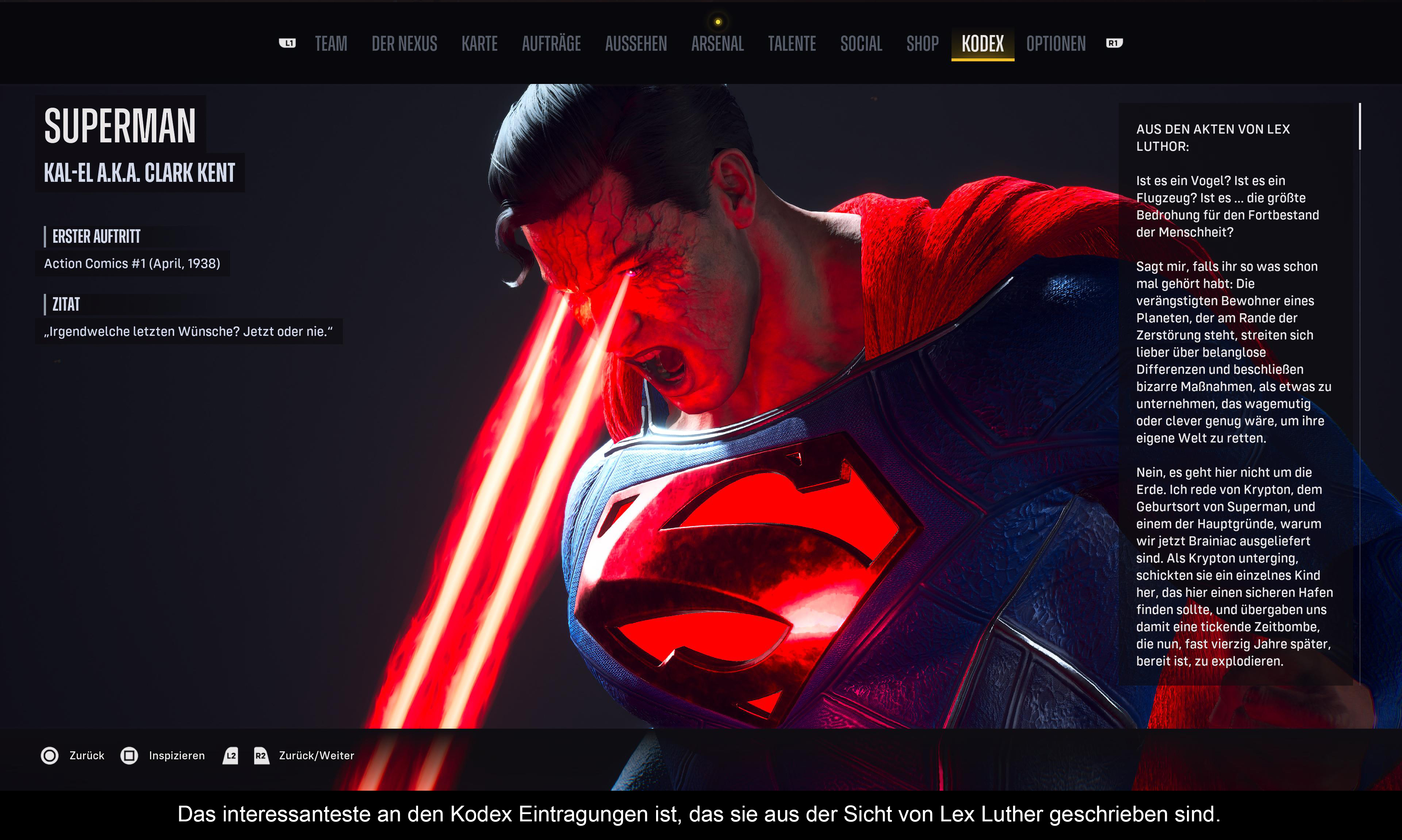 Nach meinem Geschmack hätte Handlung stärker auf vorgerenderte Szenen setzen können. Diese sind zwar vorhanden, aber könnten doch mehr Schauplätze zeigen. Oft sind es nur dieselben Innenräume und die gleichen Umgebungen. Ebenfalls schade ist es, dass Lois Lane nie richtig auftritt und nur auf Monitoren gezeigt wird. Als Reporterin vor Ort erwähnt und kommentiert diese zwar immer die Geschichte, aber nie sieht man Szenen abseits der Aktion des Suicide Squads. Aber gut, ähnliche Probleme findet man auch in der Arkham-Reihe. Die Idee mit dem Kodex ist clever, aber nicht jeder Spieler wird sich diese Einträge durchlesen und anhören.