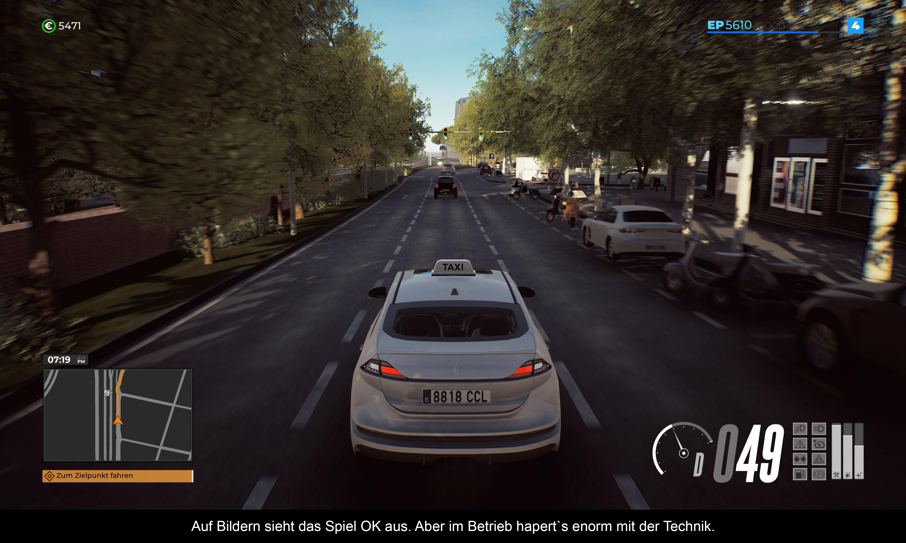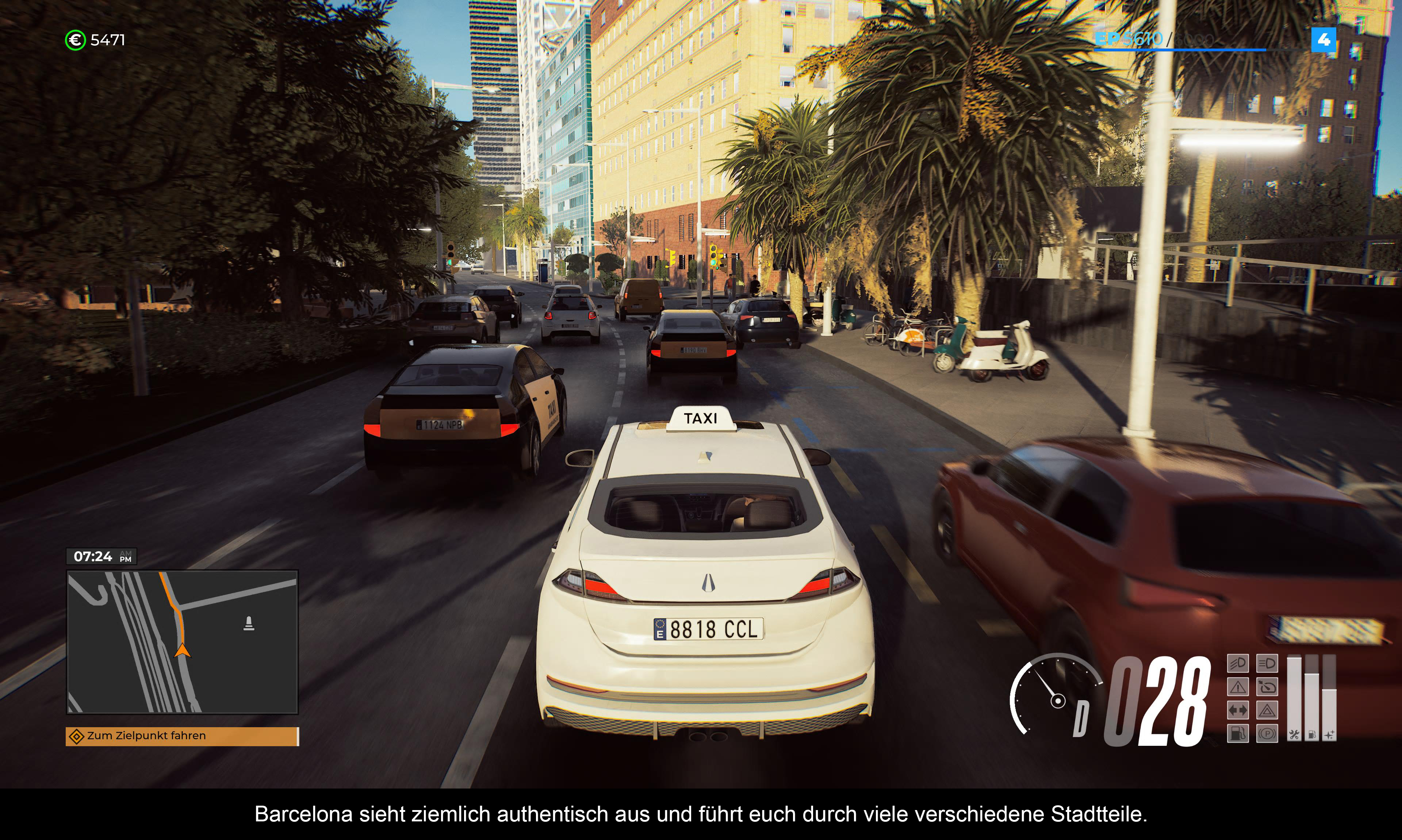 Und als Bühne für eure Karriere haben sich die Entwickler für die spanische Metropole Barcelona entschieden, die zu meiner Überraschung ziemlich detailliert und im großen Umfang digital nachgebaut wurde. Statt – wie viele andere Sim-Titel - eine fiktive und leblose Stadt anzubieten, kommt die virtuelle Version von Barcelona ziemlich authentisch daher, was nicht nur an den zahlreichen Sehenswürdigkeiten liegt, sondern auch an der realistischen Straßenführung, die euch nicht nur über rasante Schnellstraßen führt, sondern auch durch enge Stadt-Passagen im Herzen von Barcelona. Und euer tägliches Brot bei diesen Rundfahrten besteht aus dem Abholen von wartenden Passagieren, die von Punkt A zu Punkt B gefahren werden müssen. Die Einnahmen, die sich aus dem Festpreis sowie dem Trinkgeld ergeben, hängen dann schlussendlich von eurer Leistung ab. Wer zum Beispiel zu schnell durch eine 50er oder 70er Zone brettert, muss nicht nur unnötige Knöllchen begleichen, sondern wird auch von den Passagieren dementsprechend bestraft. Je sauberer man jedoch seine Fahrten erledigt, desto höher fällt am Ende auch das Trinkgeld aus. Das jeweilige Entgelt hängt dann sowohl vom Schwierigkeitsgrad der Wunschroute ab als auch von der Länge der Strecke. Und während man zu Beginn eher kurze Fahrten unternimmt, um den Spielrhythmus zu erlernen, werden die Touren im späteren Verlauf immer anspruchsvoller. Und ein Feature, welches mir bei den täglichen Fahrten enorm gefallen hat, waren die Gespräche mit den jeweiligen Fahrgästen, die euch nicht nur persönliche Fragen über den Leben und Beruf stellen, sondern teilweise auch zu den Sehenswürdigkeiten in der Stadt. Und wer an dieser Stelle die meisten Attraktionen der Stadt ausfindig gemacht (hier reicht meist ein kleiner Kameraschwenk und die Bestätigung der X-Taste, um eine Sehenswürdigkeit zu markieren), kann umso detaillierter auf die Fragen des Gastes eingehen. Eine gute Gesprächsführung macht sich dann wiederum später auch beim Trinkgeld bemerkbar. Und ohne Geld geht nichts bei Taxi Life. So braucht ihr die Moneten nicht nur, um euer Auto regelmäßig voll zu tanken, sondern auch, um euer Geschäft stetig zu erweitern. Dies erfolgt zum Beispiel durch den Einkauf von weiteren Fahrzeugen und dem Einstellen von weiteren Fahrern, die das Bankkonto nach und nach auffüllen. So interessant dieser Management-Aspekt aber klingt, in Wahrheit ist die Verwaltung eures Geschäfts relativ eindimensional und simpel. Die meiste Zeit eurer Karriere spielt also im Inneren eures Taxis ab. Und hier muss man sich eben bewusst sein, dass sich das Gameplay zwischen Stunde 1 und Stunde 100 nur geringfügig ändern wird. Ähnlich wie beim PC-Klassiker Euro Truck Simulator, den ich damals enorm verehrt habe, steht einzig euer Job – also das Taxifahren – im Mittelpunkt des Geschehens. Und dank einer riesigen Stadt mit unzähligen Touristen wird man hierbei solide unterhalten.