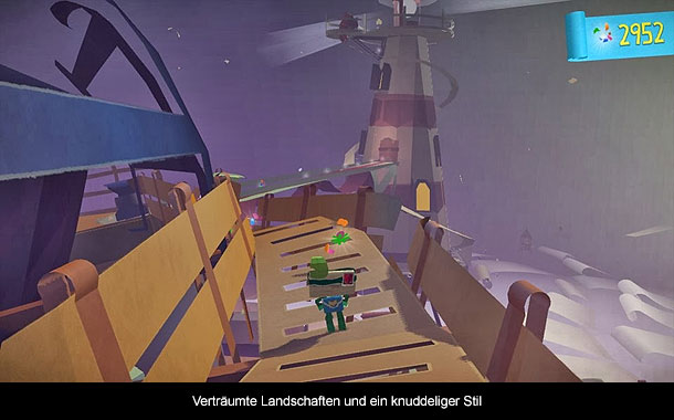 Im Laufe seiner Reise erlernt Iota immer neue Tricks und bald springt und Kugelt man durch die knallbunte Welt. Immer wieder trifft man auf die bösen Schnipsel die in verschiedener Form auftauchen und ihr eigenes Angriffsmuster haben. Einige gilt es zu überlisten, andere brauch zum Besiegen die Hilfe des Spielers. In der Mitte des Spiels findet Iota endlich ein Werkzeug, mit dem diese lästigen Schnipsel leichter besiegt werden können, aber auch neue Wege freigeschaltet werden Nun könnte man meinen, dass die Einbindung der ganzen PSVita Funktionen zu Lasten des Spielfluss geht. Dies ist hier nicht der Fall. Man merkt, dass sich die Entwickler sehr wohl überlegt haben welche Einbindung vernünftig ist und keinen Frust entstehen lässt. Doch trotz all dieser Bemühungen gibt es viel, was nicht gelungen ist. Schnell stellt man fest, dass Tearaway viel zu einfach ist. Eine Vielzahl von Rücksetzpunkten verhindert, dass ihr an einer Stelle hängen bleibt. Das System erkennt auch automatisch ob ihr vor einem dieser Punkte gestorben seid und lädt automatisch von dort. Somit geht der Reiz, schwierige Stellen zu meistern, verloren. Auch wenn man bei den Kämpfen gegen die Schnipsel scheitert, merkt sich das Spiel welche besiegt wurden. Zu guter Letzt bleibt noch die relativ kurze Spielzeit. Durch das Fehlen von Herausforderungen, kommt man zügig durch die Levels und schon nach knapp sechs Stunden ist die Nachricht an den Spieler zugestellt. Sehr enttäuschend, aber Media Molecule ist an diesem Problem selber zuzuschreiben. Man hat wirklich gut durchdachte und unterhaltsame Levels geschaffen, die mit kniffligen und spaßigen Sprungeinlagen überraschen. Doch der leichte Schwierigkeitsgrad macht es viel zu einfach. Da nützt es auch nichts, dass man in Form von Trophäen versuch den Spieler zu motivieren, diese Plattformen ohne zu Sterben zu meistern. Auch mit allerhand Sammelbaren versucht man die Spielzeit in die Länge zu ziehen, was auch nur ambitionierte Sammler erfreuen wird.