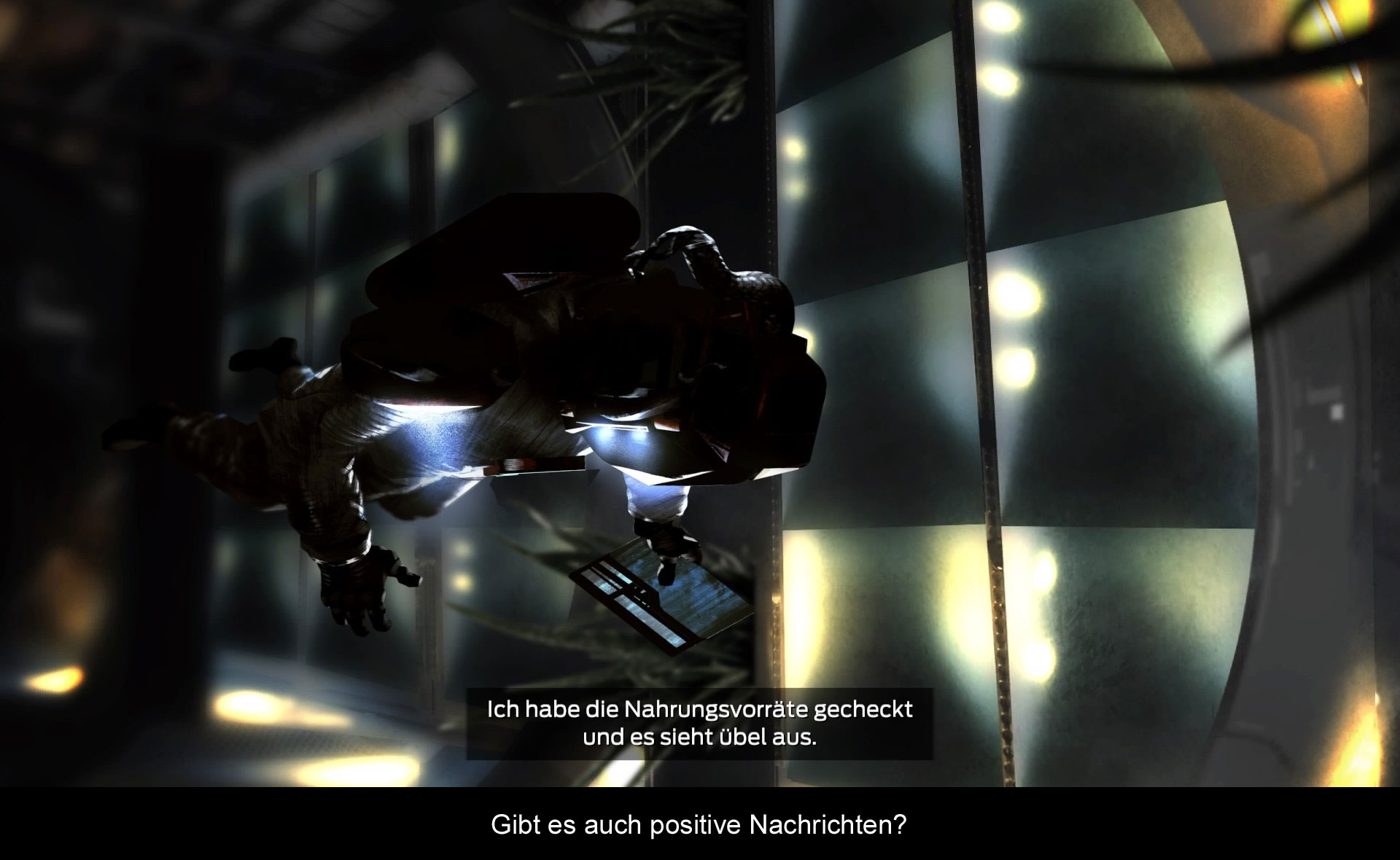 Das Spiel präsentiert sich sehr karg. Es gibt quasi nur einen wichtigen Bildschirm - das Raumschiff. Hier wählt man seine Figuren und schaltet durch die Module. Diese sind wiederum sehr gut gezeichnet und voll gespickt mit liebevollen Details, welche die jeweilige Funktion gut beschreiben. Auch der Kannibalismus wird einzigartig dargestellt. Wenn die Würfel fallen, sind diese blutrot und ziehen eine Blutspur über den Bildschirm. Jedem sollte nun klar sein, welchen Preis man für diese Runde gezahlt hat. Das wahre Highlight sind aber die animierten Gesichter der Astronauten. Diese sind von der Verzweiflung gezeichnet und man spürt, dass sie mit dem Spieler bei jedem Wurf mitzittern. Untermalt wird das Geschehen mit einem ruhigen elektronischen Soundtrack, welcher die Stimmung an Bord ausgezeichnet einfängt.