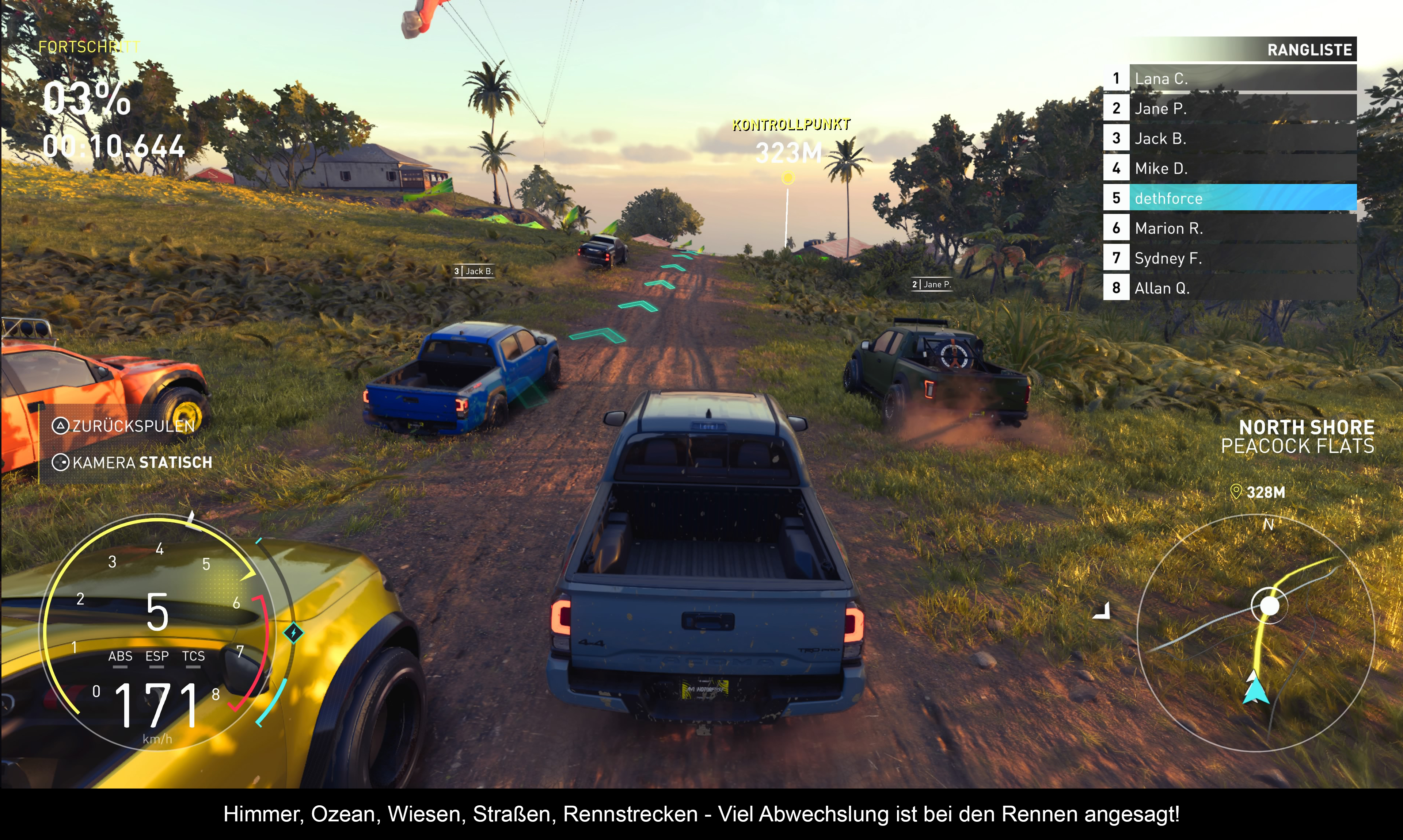 Das dritte „The Crew“ Spiel macht vieles Richtig: Mit O'ahu wird eine interessante offene Spielwelt geboten, die Playlisten sorgen für viel Abwechslung und knackige Grand Races bieten brachiale Action zwischen menschlichen Spielern. Dazu gibt es endlich ein passendes Handling und wie gehabt massenhaft Herausforderungen, mit denen man die Zeit totschlagen kann. Allerdings existieren auch ein paar Sachen, die stören: Zum Beispiel die nicht immer schlüssige Menüführung. Ebenfalls irritierend sind die Geisterfahrzeuge, die dem Spieler entgegenkommen und einem eine lebendige Spielwelt vorgaukeln sollen. Im Gesamtkontext lassen sich die Dinge verschmerzen. Das „Motorfest“ ist extrem unterhaltsam und vor allem abwechslungsreich. Ich würde sogar behaupten, dass es aktuell auf der PS5 kein besseres Open World Arcade-Rennspiel gibt.