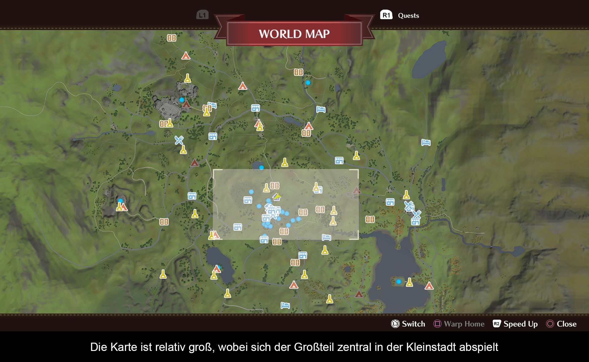 Persönlich empfinde ich PS2-Grafik Vergleiche immer als hyperkritisch, aber in diesem Fall doch teilweise berechtigt. Während die Innenstadt und Figuren noch ziemlich gut modelliert sind und dank des gewählten Stils grafisch als passabel durchgehen, trifft das für die Umgebung nicht mehr zu. Wiesen und Straßen verfügen über sehr einfache Texturen. Die Polygonanzahl der Objekte wurde auf das Minimalste reduziert und Copy / Paste gehört zur Tagesordnung. Aufgrund der Leere in der Spielwelt, könnte man meinen, sie erst im Nachhinein entstanden, nur um die Spielzeit zu strecken. Man braucht bloß mal einen Blick auf die Übersichtskarte werfen, noch nicht mal diese ist ordentlich aufgelöst. Die Ladezeiten sind dafür aber andererseits auch erstaunlich zeitraubend. Wer nun meint, dass es mit der SSD der PS5 schneller geht, hat Recht, aber muss dafür mit Grafikbugs kämpfen.