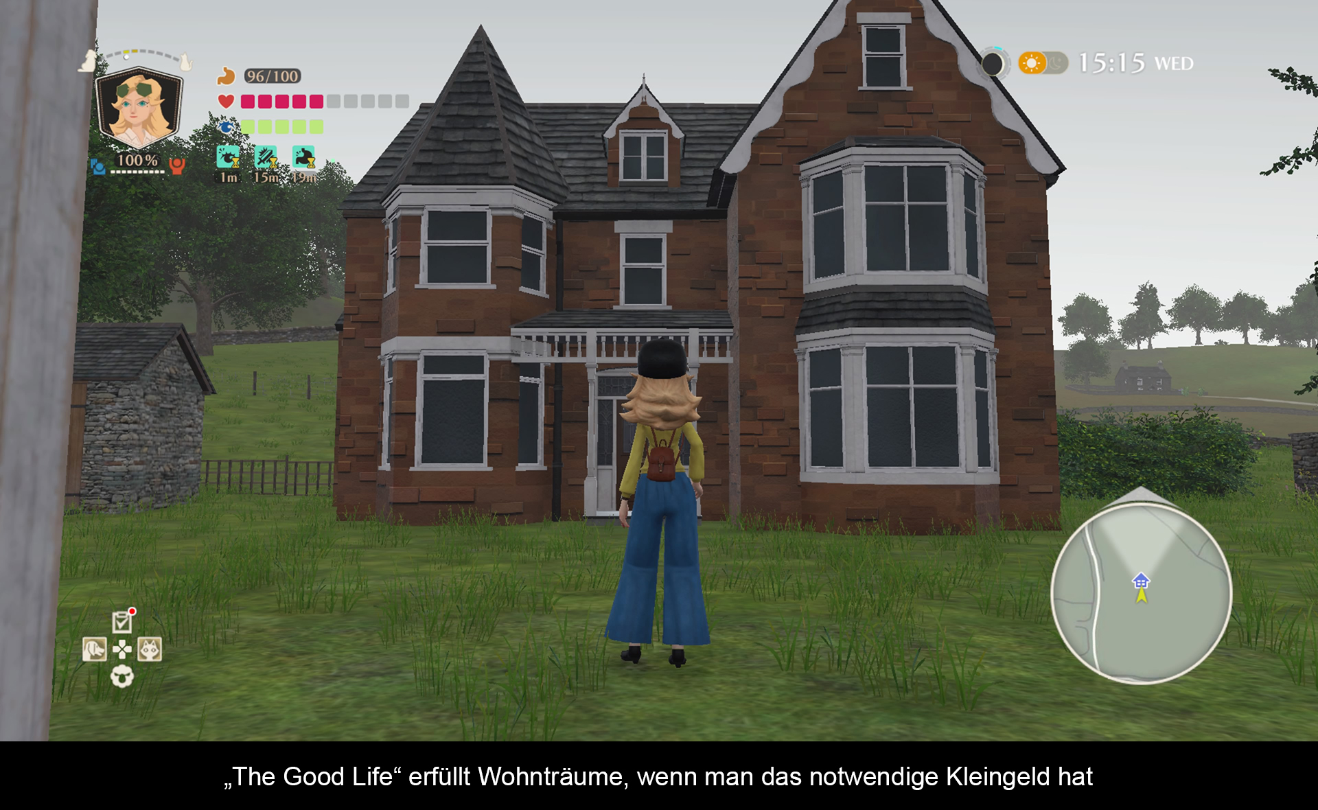 Früh im Spiel wird Naomi ein Haus zur Verfügung gestellt, dass als zentraler Hub dient. Denn „The Good Life“ ist eine Mischung aus Adventure, RPG und Lebenssimulation. Naomi muss stets auf ihre Gesundheit achten, aber der Reihe nach! So ziemlich jede Mission lässt sich mit dem Suchen von bestimmten Items lösen, die man an Punkt A erhält und nach Punkt B bringen muss. Zwischenzeitlich gibt es kleinere Geschicklichkeitseinlagen oder Kämpfe die man in der Hunde- / Katzenform bestreitet. Im Laufes des Spiels wird man immer zwischen den beiden Vierbeiner wechseln, welche wiederum über eigene Fertigkeiten verfügen. Die Katze läuft schneller und hüpft höher, während der Hund graben kann oder Dinge erschnüffelt. Was sie sich aber teilen, ist die sehr schlechte Steuerung. Sprungpassagen sind definitiv nicht die Stärke des Spiels. Ein weiteres großes Spielelement ist die Kamera. Als gute Reporterin muss Naomi ihren Flamingo Account (das Instagram im Spiel) regelmäßig mit neuen Bilder füllen. Hier gilt es auf die wöchentlichen Schlagwörter zu achten, denn nur wer das richtige Bild zur richtigen Zeit hoch lädt, bekommt Geld! Tja und Geld ist hier ein wichtiger Bestandteil, denn Naomi muss sich ihr Leben schließlich selbst finanzieren. Nur mit einem gut gefüllten Magen bleibt man stets agil. Entweder man nutzt den eigenen Garten, oder man besucht das Dorf-Gasthaus, wo man allerhand Essen gegen teures Geld bekommt. Hier gilt es aber, auf seine Ernährung zu achten, denn ansonsten findet man sich wegen Zahnschmerzen gleich beim Doktor wieder, der einen ordentlichen Batzen Geld für die Behandlung berechnet. Auch will man ja nicht ewig in dem Schuppen bleiben, sondern sich eine Villa bauen! Somit gilt es auch Baumaterial und Gold, im hiesigen Steinbruch abzubauen. Die Kleidung sollte man auch ab und an wechseln, bloß gut das man hier auf seine Schafe zurückgreifen kann. Tja und der Lebensmittelmarkt hat wiedermal nicht alle Zutaten für den Eintopf, wird wohl Zeit ein anderes Dörfchen aufzusuchen.