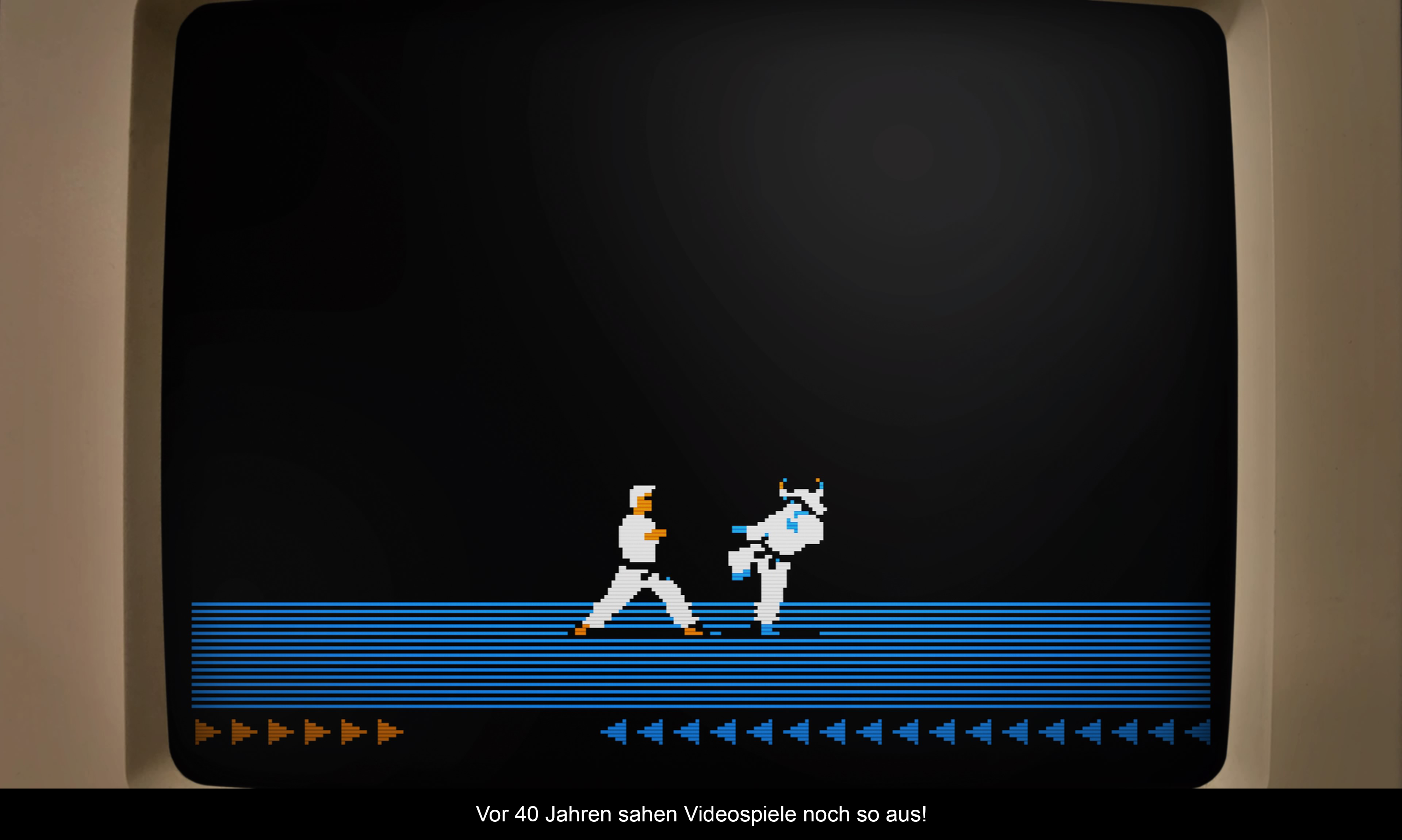 Aber ich interessiere mich für Videospielgeschichte und ich lese gerne über die Ursprünge meines Hobbies inkl. der ganzen bahnbrechenden Klassiker. Und genau an diesem Punkt setzt „The Making of Karateka“ an. Anstatt einfach nur ein paar Roms auf die aktuellen Systeme zu bringen, bekommt man hier pixelgenaue Fassungen der Originale geboten und dazu eine umfangreiche Dokumentation rund um die Entstehung des Spiels. Durch die multimediale Aufbereitung wirkt das sogar wie ein interaktives Museum und Hand aufs Herz, das ist nun mal besser als jeder Artikel in der Retro Gamer.