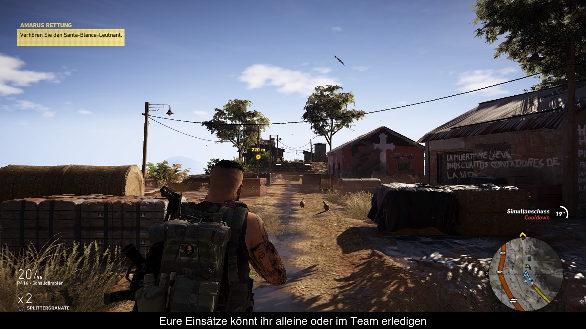 Bis hierher dürfte ja ziemlich klar sein, das wir nicht mehr von einem klassischen Ghost Recon Spiel sprechen oder? Nun gut, wenn man schon seine Wurzel fast vollständig verlässt, dann darf man sich ja auch gerne weiter entwickeln. Also spielerisch wäre das nicht so ganz verkehrt gewesen, hätte man sich an Massive`s The Division orientiert. Es stammt übrigens vom selben Publisher...falls ihr mit lesen solltet Ubisoft. Simples Beispiel, warum ich nicht verstehe warum man sich nicht die eigenen Spiele angeschaut hat um dortige Gameplay Mechaniken einfach zu übernehmen: Während man in The Division per Druck auf die X-Taste in Deckung geht, geschieht dies in Wildlands automatisch. Das hat ja auch schon in MGSV so gut funktioniert. Also bitte, das war nie und wird auch niemals gut funktionieren. Als Spieler möchte ich entscheiden, wann mein Charakter in Deckung zu geht hat und wann nicht. Es verdirbt mir zwar nicht den Spielspaß, allerdings ist es auf der anderen Seite auch so vollkommen unnötig. Sofern man sich mit dem Deckungssystem angefreundet hat, geht es in typischer Ubisoft Manier weiter mit dem einfallslosen und langweiligen Missionen. Dabei spielt es kaum eine große Rolle, ob es eine Haupt oder Nebenmission ist. Jemand im Dorf befreien, vorher noch unzählige Gangster aus dem Weg räumen und mit der Zielperson fliehen und am Zielort abliefern. Klingt langweilig? Das ist es auch. Leider wird es im weiteren Spielverlauf nicht besser. Ich habe schon weitaus schlimmeres gesehen und gespielt, aber hier wäre viel mehr möglich gewesen. Es gibt intern bei Ubisoft viele Titel, wo es auch durchaus gelungene Missionen gibt. Oder andere Open-World Spiele, hier darf man sich ruhig mal die guten Sachen gerne abschauen. Neben den Missionen gibt es haufenweise Sammelkram, der wenig bringt und noch dazu gar keinen Spaß macht. Das allein ist aber kein Problem von Ubisoft Spielen. Vielen Entwicklern gelingt es nicht, die Spieler in der Welt anderweitig zu beschäftigen. Sie gehen lieber den leichten Weg und bieten zum weiß ich nicht wie vielen Mal die selben Aufgaben. Zugegeben ich habe aktuell auch keine Idee, wie man die Welt füllen könnte mit Interessanten Kram. Aber einfach nur das selbe zu wiederholen, aus anderen Spielen ist mir schlichtweg zu wenig.