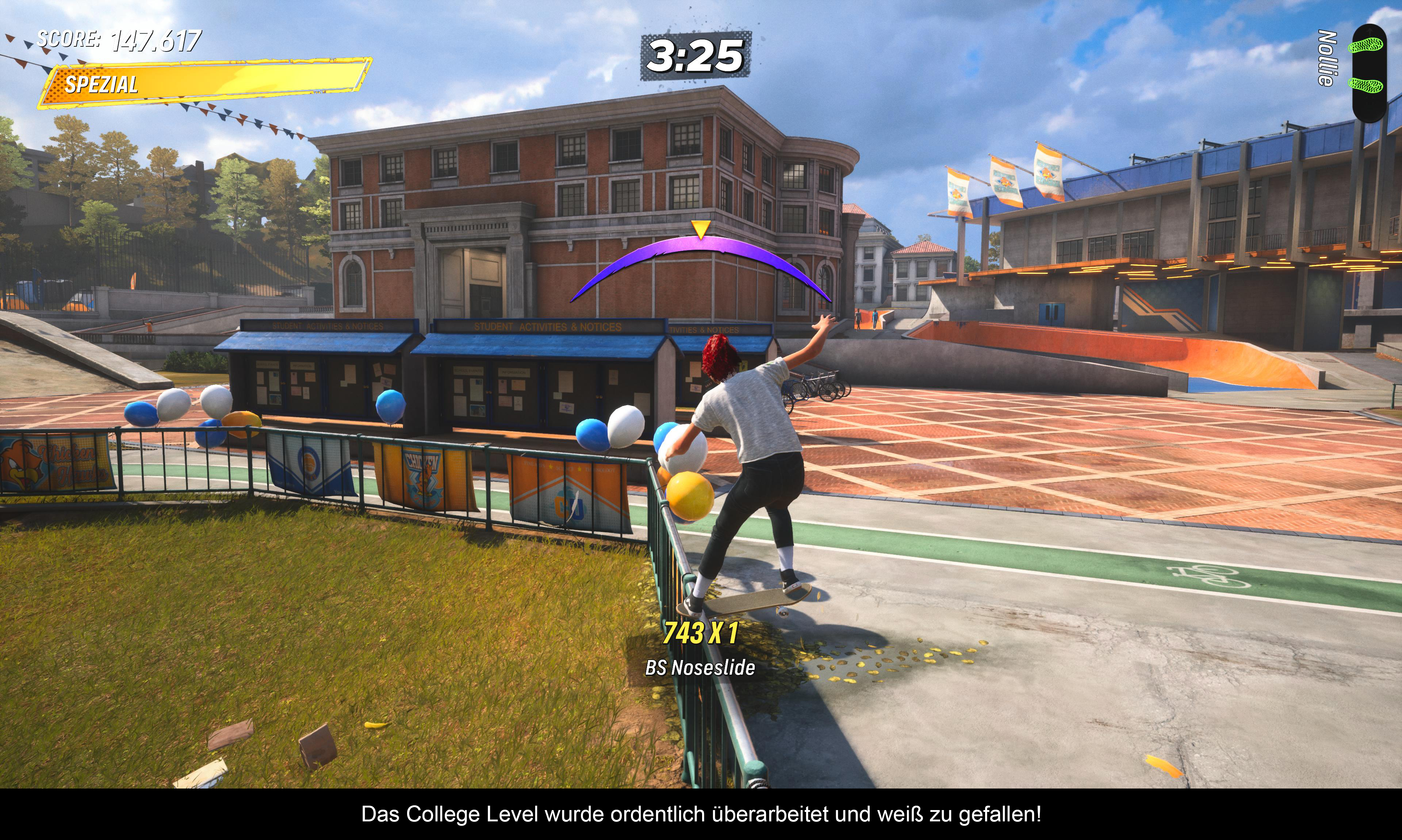 Teil 3 war der letzte klassische Teil, bevor neue Elemente eingeführt wurden. Oben läuft immer noch der Zwei-Minuten-Timer und es gilt, in dieser Zeit die entsprechenden Aufgaben zu erfüllen. Egal, ob das Knacken des Highscores, die Suche nach „SKATE” oder ein entsprechender Trick auf einer Rampe – in welcher Reihenfolge ihr die Aufgaben abarbeitet, ist egal. Am Ende des Countdowns zählt nur das Ergebnis. Teil 3 ist somit ein gelungenes Remake des PS2-Klassikers.