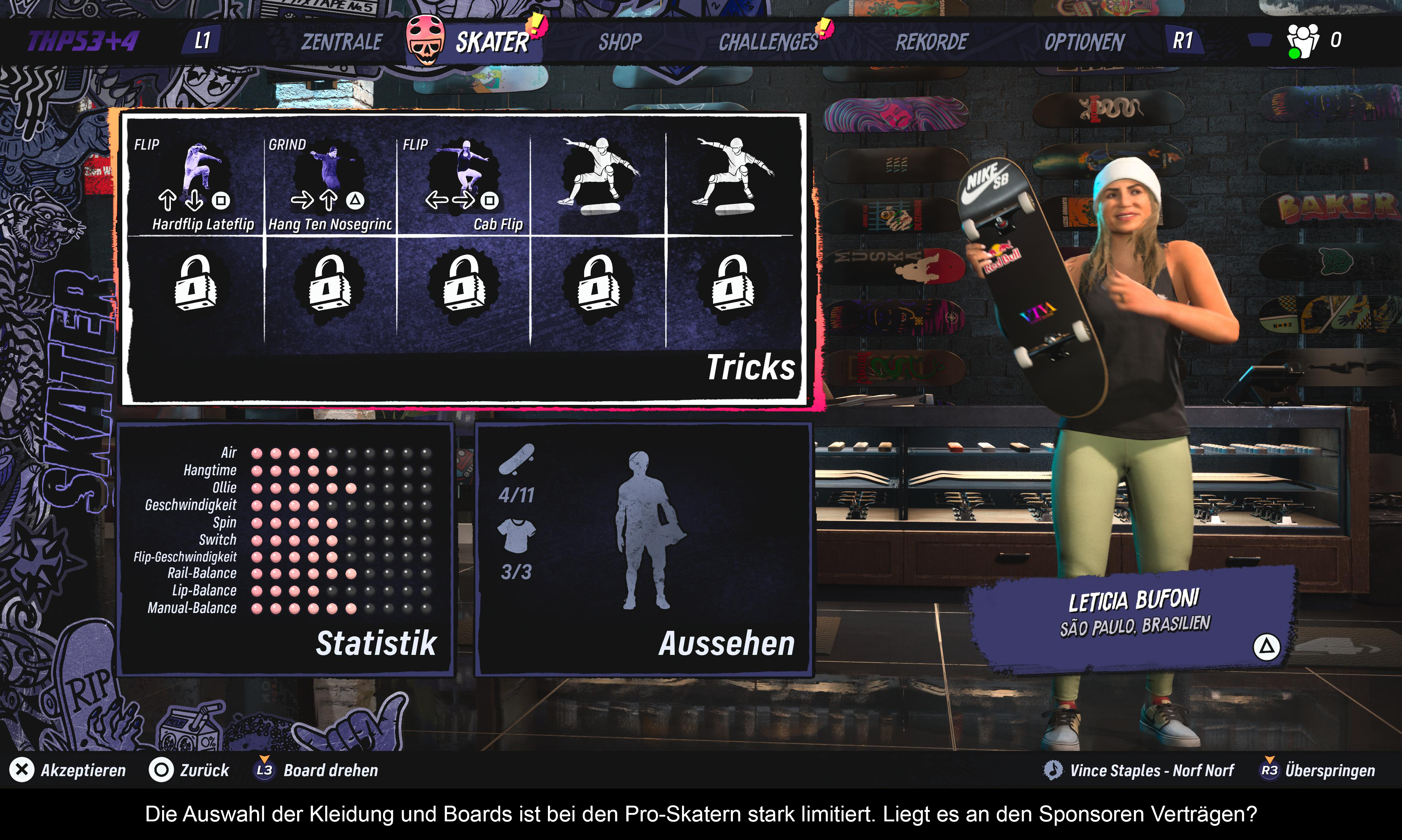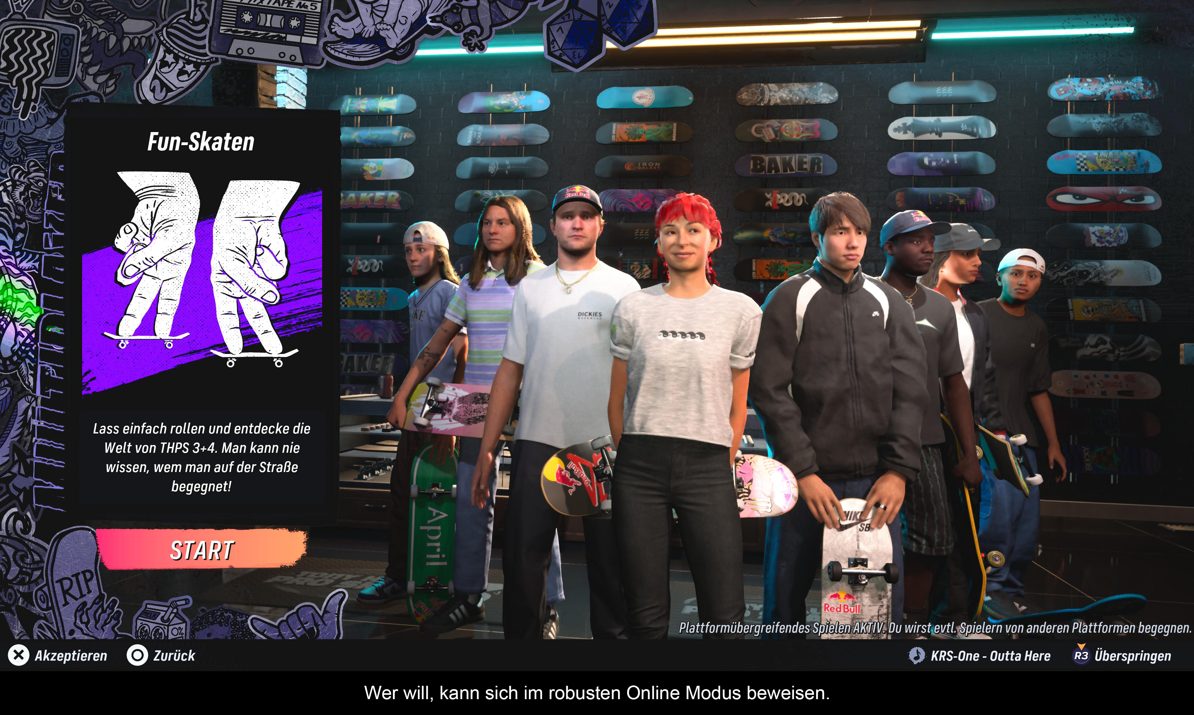 Am meisten schmerzt jedoch der Soundtrack. Viele Klassiker wurden gestrichen – vielleicht, um Kosten zu sparen? Wenn man diversen Bands Glauben schenken darf, wurde nicht einmal bei ihnen angefragt. Zugutehalten muss man den Entwicklern allerdings, dass die Auswahl der neuen Lieder durchaus gelungen ist. Viele der Künstler wurden auch direkt von Tony Hawk vorgeschlagen. Insgesamt spiegelt die Auswahl den Zeitgeist der Tony Hawk-Reihe wider. Zuletzt noch ein Hinweis zu technischen Abstürzen. Anscheinend vertragen sich das Spiel und der Stand-by-Modus der PS5 nicht. Ansonsten gibt es keine nennenswerten Probleme.