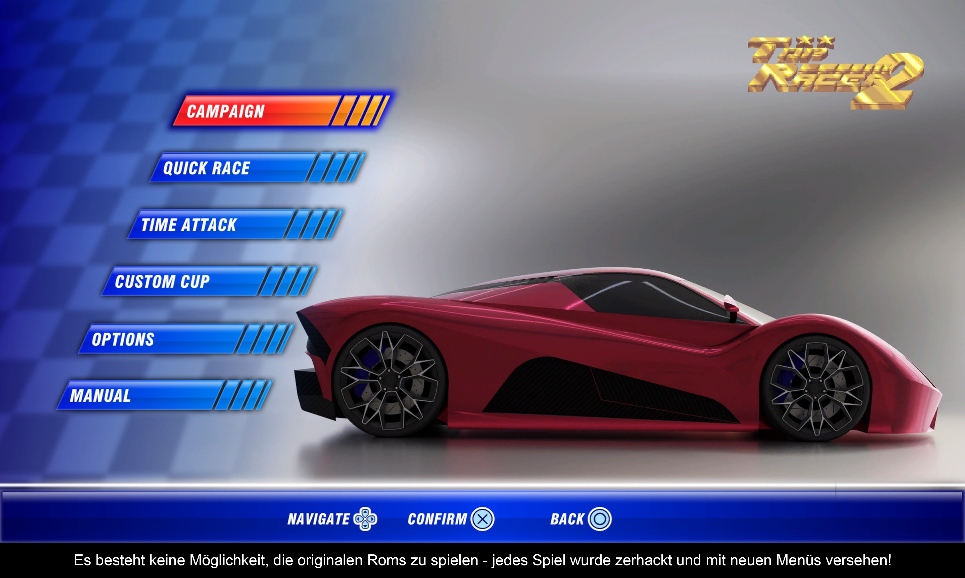 Hierbei handelt es sich lediglich um einen Bonus-Titel. Wobei modifiziertes Rom trifft es wohl eher. Man kann mit ein paar von „Horizon Chase“ inspirierten Autos über die Strecken rasen. Ansonsten sollte man keine Überraschungen erwarten.