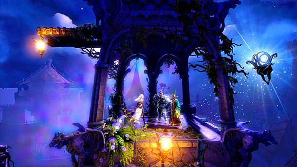 Wieder spielt man alleine alle drei Charaktere gleichzeitig und kann jederzeit durch die Riege zappen (sofern noch alle am Leben sind). Hat man jedoch noch ein/zwei Kumpels neben sich oder dieses Mal sogar irgendwo anders auf der Welt sitzen, kann man das Spiel auch im Koop-Modus bestreiten. Hier spielt entweder jeder einen festgelegten Charakter, oder man zappt auch hier jederzeit durch die drei Helden wider Willen. Der Ritter schnitzt sich gekonnt durch die Gegner oder schützt sich und seine Gefolgsleute mit einem Schild vor herabfallenden Geröll, während die Diebin mit ihren Pfeil und Bogen Goblins auf höher gelegenen Plattformen in Schach hält und sich geschmeidig über Abgründe schwingen kann. Der Zauberer hingegen benutzt eher sein Köpfchen und zaubert Kisten oder Planken herbei, auf die sich die anderen stellen können. Zudem kann er diverse Gegenstände bewegen und manipulieren, um entweder den Weg freizumachen, oder Gegner hinterlistig über den Jordan zu jagen. So versucht man durch Kombinationen der einzelnen Fähigkeiten die Figuren ohne Schaden vorbei an Fallen oder Gegnerhorden zu manövrieren. Reichen die Fähigkeiten irgendwann nicht mehr aus, kann man mittels eines Punktesystems neue erlernen oder vorhandene erweitern. Notwendig ist dies zwar nicht, aber um an alle Geheimnisse zu kommen sinnvoll. Um an die begehrten Punkte zu kommen, braucht man übrigens nur Ausschau nach den bläulich schimmernden Kugeln zu halten. Hat man die Punkte schließlich verteilt, kann man sich Charakterabhängig nun unsichtbar machen, mehrere Objekte herbeizaubern, Hämmer werfen oder Feuerpfeile schießen.