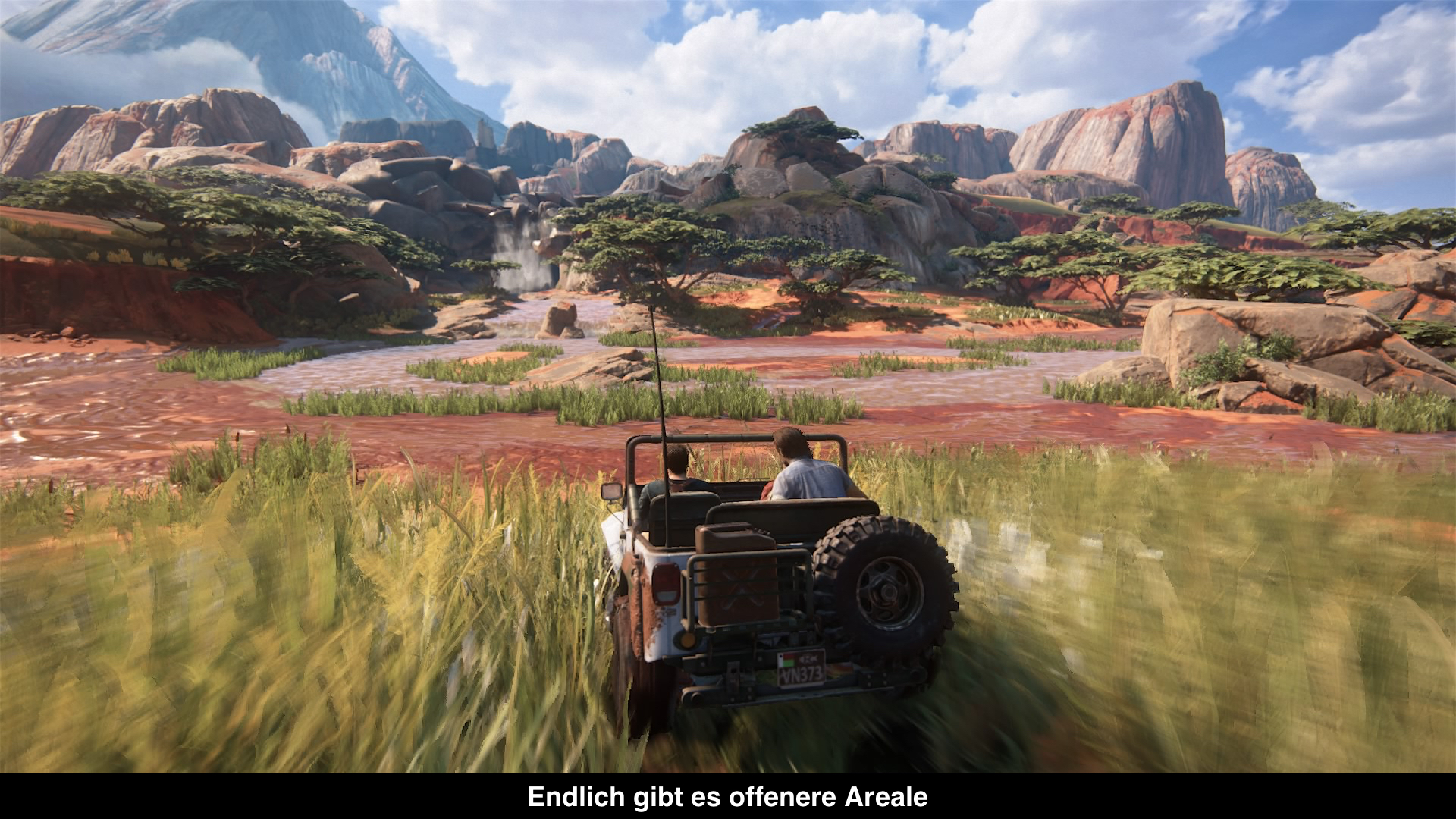Wer aber wieder einen Action-Blockbuster durch und durch erwartet, könnte enttäuscht werden. Denn in dem neuesten Ableger wird der Adventure Aspekt besonders hervorgehoben. Es gibt immer wieder längere Sequenzen in denen ein kein einziger Gegner begegnet, wo man stattdessen in Ruhe ganze Ortschaften erkundet, Rätsel löst und einfach die Szenerie und Geschichte genießt. Denn während des ganzen Spielverlaufs sprechen die Protagonisten miteinander, erzählen sich mal einen Witz, sprechen über das aktuell geschehene und bringen so die Geschichte voran. Die Rätsel sind dieses mal übrigens ziemlich gut ausbalanciert. Sie sollten nämlich niemanden vor größere Probleme stellen, sind aber nicht ganz so leicht wie früher. Ansonsten gibt es allerlei neue Features, wie ein Seil, womit man sich an Bäumen wie Tarzan hängen kann. Selbst Fahrzeuge gibt es dieses mal, die man selber steuern kann. Dank der offenen Areale darf man deshalb einfach mal die Gegend erkunden.