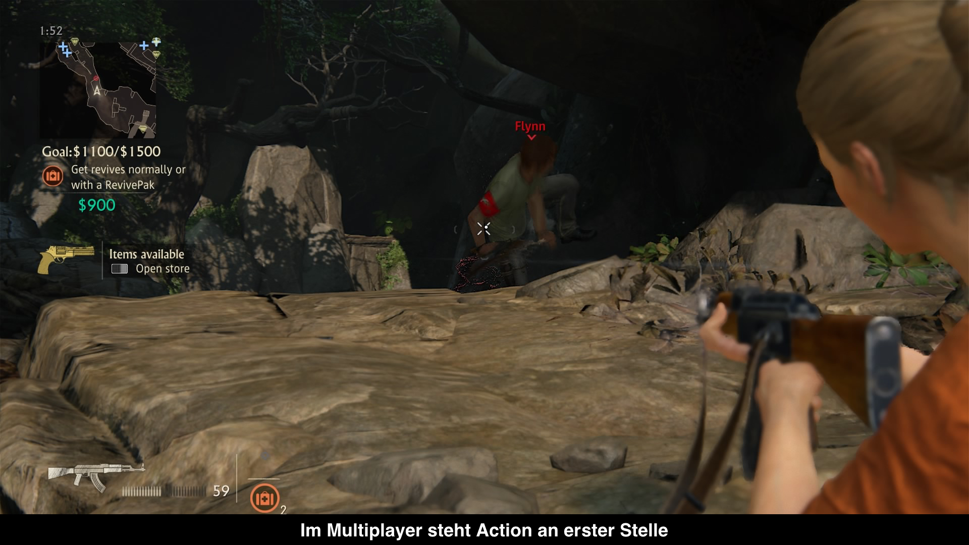 Seit dem zweiten Spiel gibt es einen Multiplayer-Modus in der Uncharted-Serie und A Thief`s End bekommt natürlich auch einen. Dank zahlreicher Features möchte man hier nicht nur für einen leichten Einstieg sorgen, sondern vor allem Langzeitmotivation bieten. Ersteres erreicht man unter anderem dadurch, dass es neuerdings Herausforderungen gibt, die euch gegen die KI antreten lassen. Darin müsst ihr immer eine gewisse Punktzahl erreichen, indem ihr z.B. Gegner nur mit Granaten töten sollt. So wird man langsam an die einzelnen Features des Multiplayers herangeführt und das ist auch gut so, denn der Multiplayer spielt sich anders als der Singleplayer. So gibt es zwei Teams mit je sechs Personen und man selber kann nicht nur das Erscheinungsbild ändern, sondern auch die eigene Taktik anpassen. Mit Hilfe eines Loadouts lässt sich nämlich bestimmen mit welchen Waffen ihr in den Kampf geht. Aber nicht nur die Waffen werden bestimmt, sondern auch Goodies, wie Granaten oder auch mystische Objekte und Sidekicks. Sidekicks lassen sich im Kampf beschwören und agieren z.B. als Tank, sind also stark gepanzert, können viel Schaden austeilen und gehen aggressiv auf den Gegner. Die mystischen Objekte wiederum sind spezielle Items, die unterschiedliche Effekte auslösen. Besonders beliebt ist der Sarkophag von El Dorado, der Gegner in der Nähe verflucht bzw. ihnen Schaden zufügt. So kann sich jeder seinen eigenen Charakter erstellen und seinen eigenen Spielstil kreieren. Insgesamt gibt es drei Spielmodi, Team-Deathmatch, ein Capture-the-Flag ähnlicher Modus und ein Eroberungs-Modus. Die Langzeitmotivation entsteht aber insbesondere durch die „Call of Duty“-fizierung, d.h. das man ständig neue Waffen, Seins und andere Gegenstände freischalten kann durch das Spielen, sodass es immer einen Grund gibt noch eine Runde weiterzuspielen. Das Gefühl der Belohnung funktioniert halt immer. Zudem wird man innerhalb des nächsten Jahres eine Reihe an neuen Maps, Spielmodi und Gegenständen kostenfrei zur Verfügung stellen, sodass es immer wieder neues zu entdecken gibt.