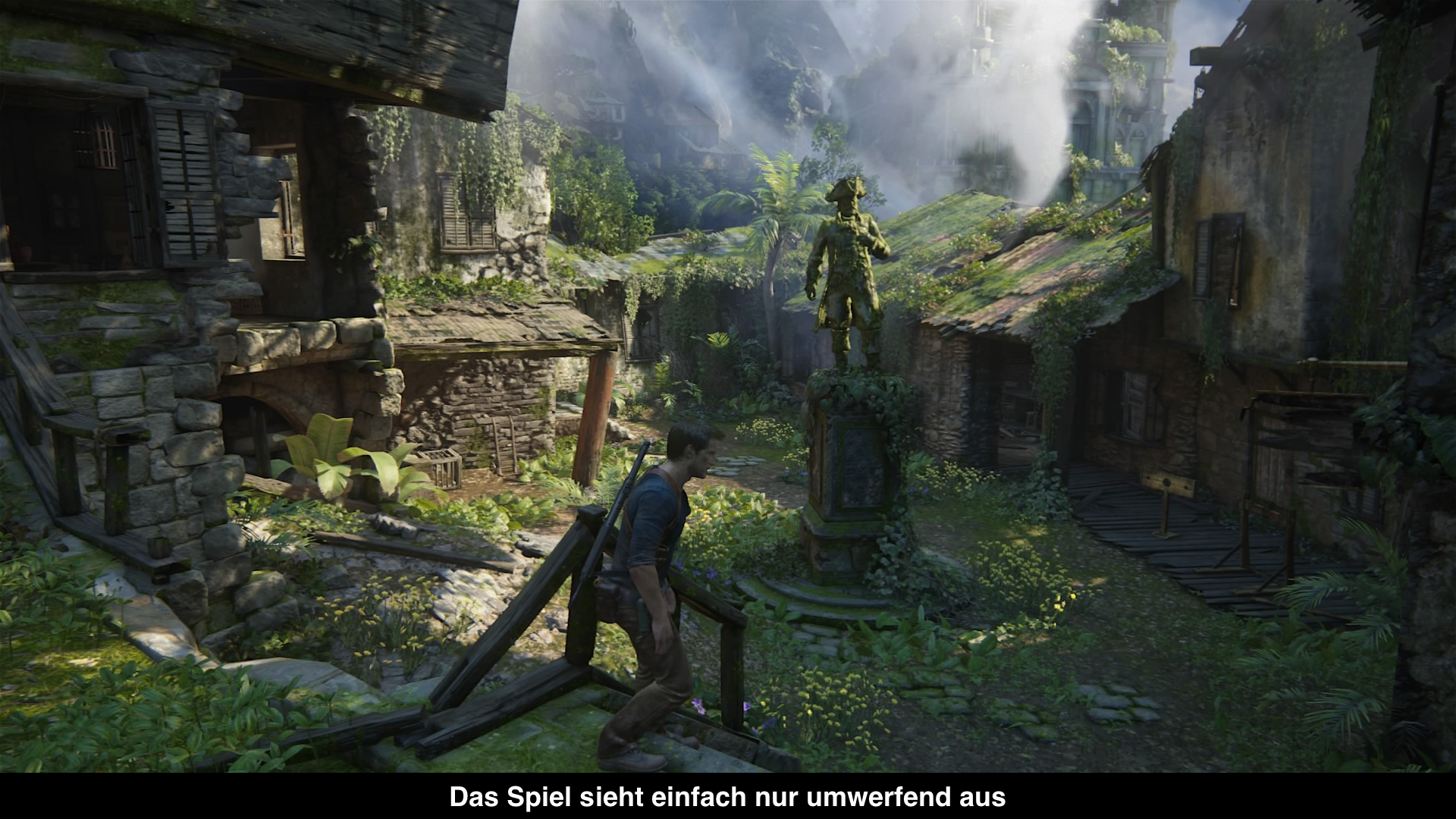 Uncharted war schon immer ein Vorzeigespiel, aber der vierte Teil hebt die grafische Qualität auf ein völlig neues Level. Die Charaktere sind so detailliert, wie noch nie. Vor allem die Gesichtsanimationen suchen ihresgleichen. Jede einzelne Emotion bringen sie perfekt rüber und die Illusion wird dank feiner Haare und im Wind wehender Kleidung und sogar Brusthaare perfekt. Diese Detailverliebtheit zieht sich durchs gesamte Spiel. Man ist ständig an unterschiedlichen Orten unterwegs und obwohl man einige davon nur kurz zu Gesicht bekommt, sind alle einzigartig und mit viel Liebe zum Detail gestaltet worden. Man erwischt sich ständig dabei die Szenerie und Umgebungen zu betrachten und der Share-Button glüht. All das bekommt man in einem absolut perfekten Bild präsentiert, was ein gestochen scharfes Anti-Aliasing nutzt. Das Motion-Blur wird gezielt eingesetzt und es gibt einfach nichts auszusetzen. All das gibt es in FullHD bei nahezu immer stabilen 30 Bildern pro Sekunde und offeneren Arealen als jemals zuvor. Ladezeiten bekommt man übrigens nicht zu sehen. Einzig beim Start des Spiels gibt es eine längere Ladezeit und dann nie wieder, wenn man nicht gerade durch die Kapitel springt, sondern einfach weiterspielt. Im Multiplayer bekommt man dafür ein ganz anderes Bild, was aber nicht schlechter ist. Denn dort hat man sich entschieden die 60 Bilder pro Sekunde anzupeilen und um das zu erreichen, hat man die Auflösung auf 900p verringert und die grafische Qualität ein klein wenig zurückgeschraubt. Trotzdem sieht das Spiel auch dort umwerfend aus und läuft butterweich, was im Wettbewerb ein Segen ist.